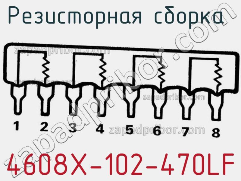 Основные характеристики резисторной сборки 4608X-102-470LF : 4608X-102-470LF, Res Thick Film NET 47 Ohm 1 Ohm 1W ±250ppm/C ISOL Conformal Coated 8-Pin SIP Pin Thru-Hole BulkPassives > Resistors > Fixed - Networks/Arrays 4-изолированные резисторы