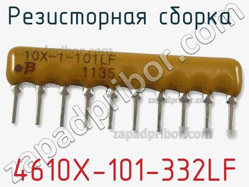 Основные характеристики резисторной сборки 4610X-101-332LF : 4610X-101-332LF, 9 х3.3 кОм резисторная сборка (аналог 10A332J) Резисторные сборки Резисторные сборки и массивы 10pins 3.3Kohms Bussed
