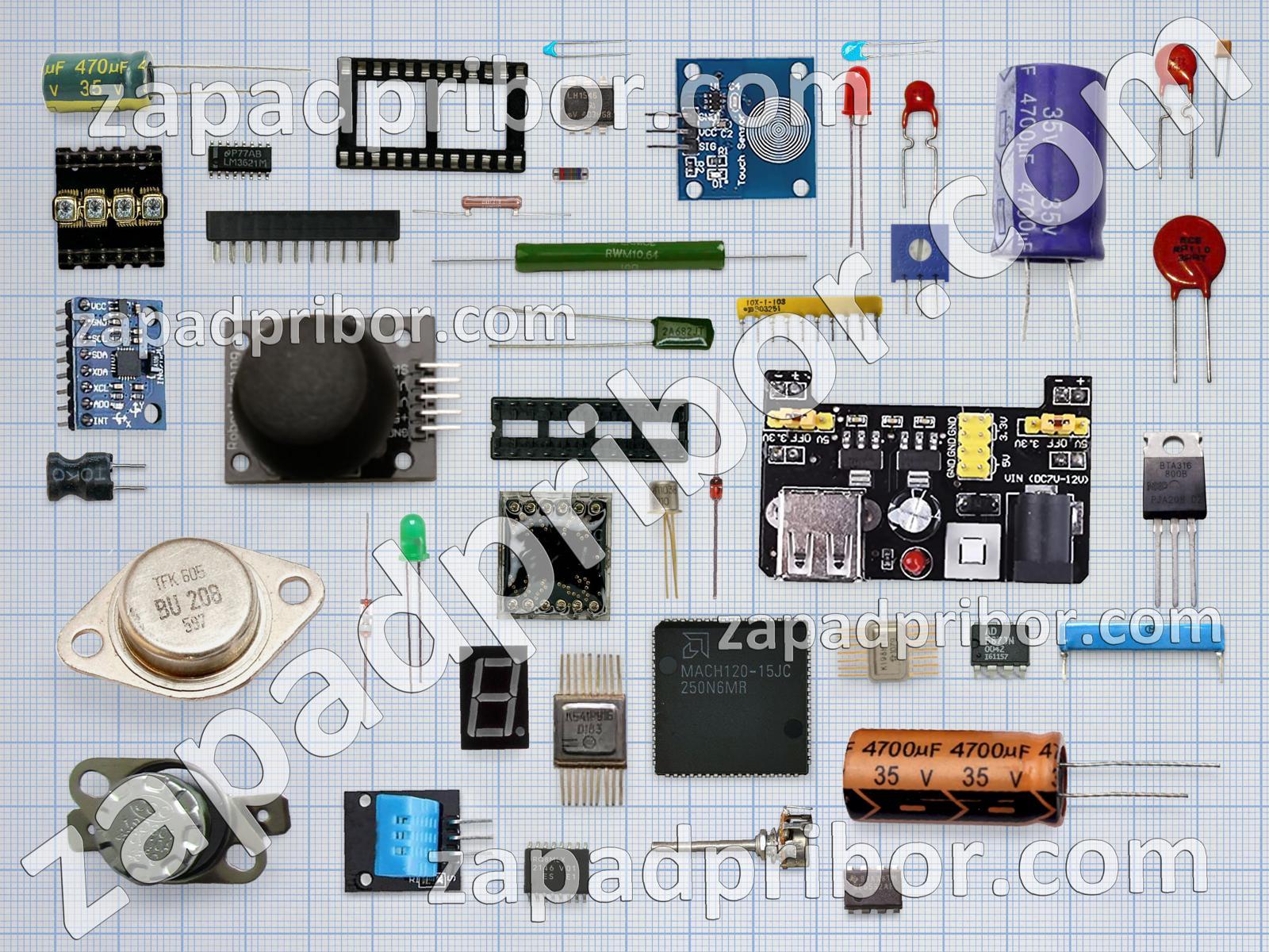 Кроме этих радиодеталей на нашем сайте вы сможете найти большой перечень компонентов. Осуществляйте поиск по основным типам радиодеталей таких как реле, разъем, дроссель, диодный мост, конденсатор, индикатор, резистор, светодиод, трансформатор, адаптер, тумблер, микросхема, транзистор, фотодиод, соединитель, переключатель, колодки, тиристор, датчик, экран, индуктивность, усилитель, кнопка, дисплей, контакты, диод, резонатор, преобразователь и другие.