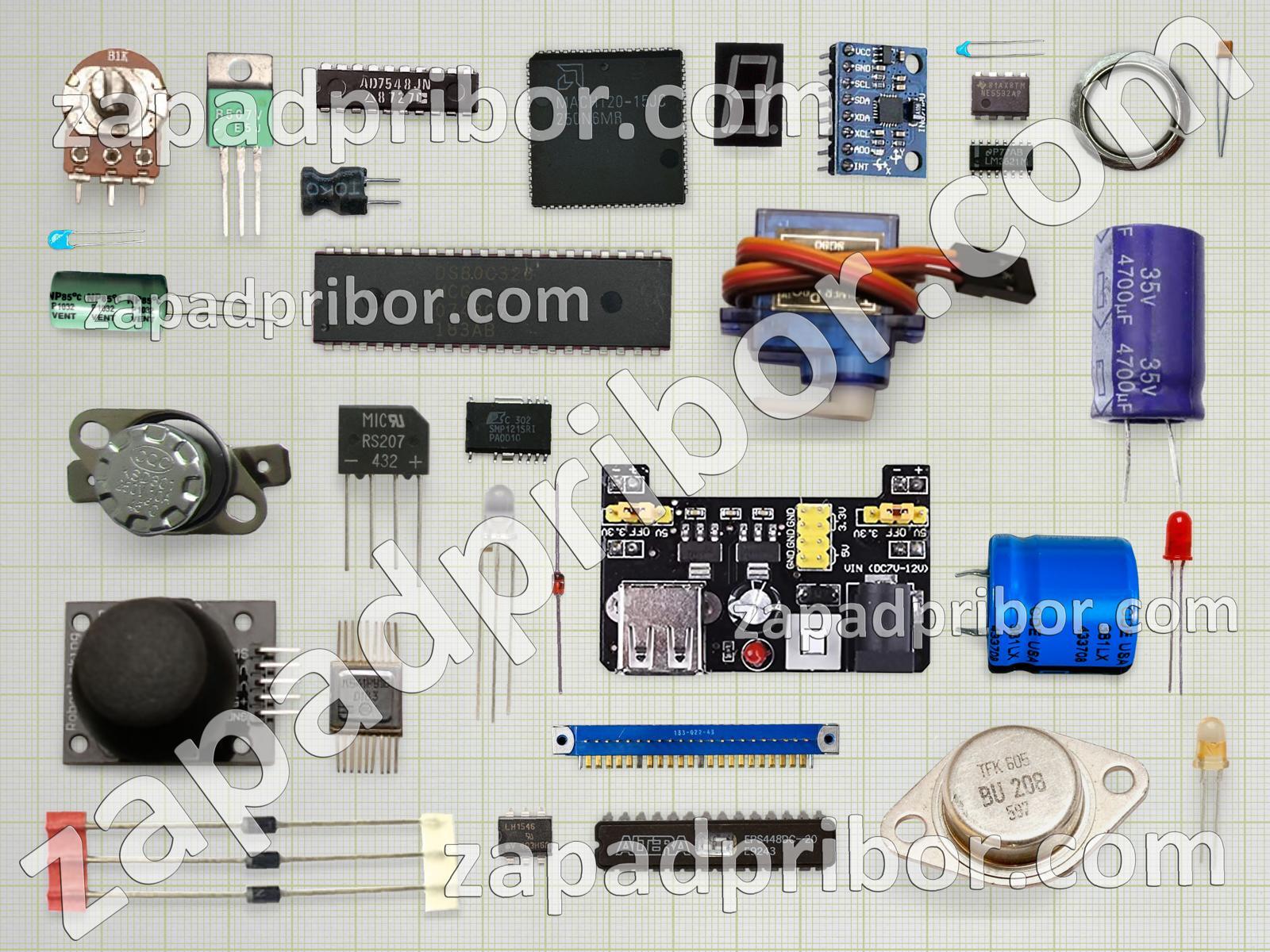 Кроме этих радиодеталей на нашем сайте вы сможете найти большой перечень компонентов. Осуществляйте поиск по основным типам радиодеталей таких как конденсатор, резистор, тиристор, диод, кнопка, экран, реле, тумблер, переключатель, преобразователь, разъем, дроссель, диодный мост, дисплей, трансформатор, микросхема, соединитель, датчик, адаптер, индикатор, колодки, фотодиод, индуктивность, контакты, резонатор, светодиод, транзистор, усилитель и другие.