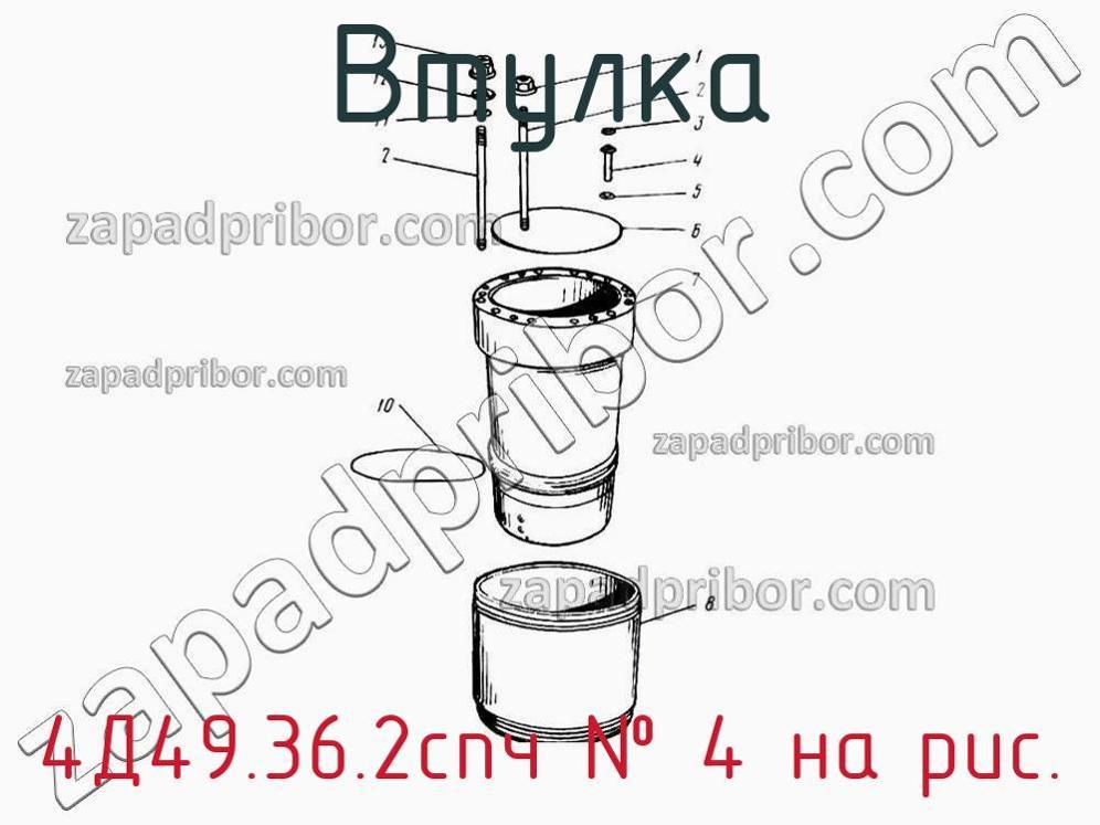 ОТК компании гарантирует отсутствие дефектов у всех втулок на нашем сайте. Для покупки 4Д49.36.2спч свяжитесь с отделом продаж. Менеджеры компании предоставят всю информацию о цене, наличии, сроках доставки, гарантии и ответят на любые другие вопросы. Втулка, номер 4 на чертеже, Втулка цилиндра 6Д49.36спч-1 и другие запасные части для 49 (Ч 26/26) , а также другие втулки и похожие изделия представлены на сайте zapadpribor.com.