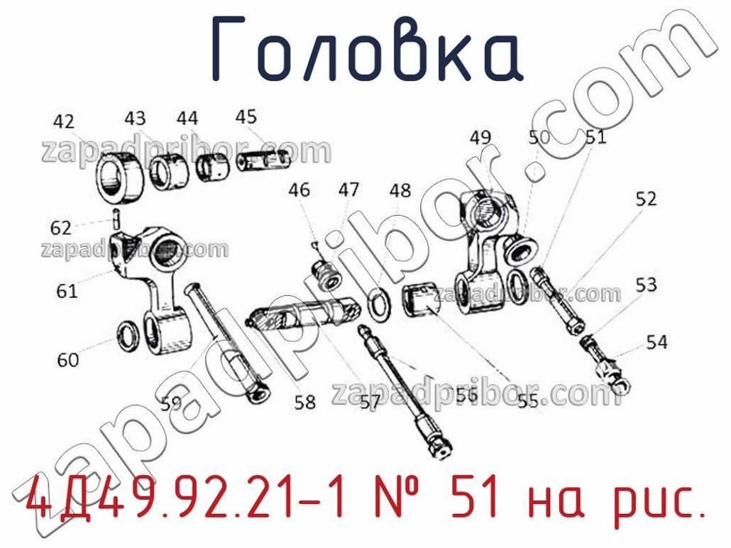 Наш отдел технического контроля гарантирует отсутствие брака и других несоответствий технической документации у всех головок представленных на нашем сайте. По вопросам покупки 4Д49.92.21-1 обращайтесь в отдел продаж. Для информации о цене, наличии, сроках поставки, сроке гарантии и по других вопросах обращайтесь по телефонам, указанным в контактах или оставьте запрос через форму обратной связи. Головка штанги, номер 51 на чертеже, Лоток с распределительным механизмом 3А-6Д49.92спч ч.2 и другие запасные части для 49 (Ч 26/26) , а также другие головки и похожие изделия представлены на сайте zapadpribor.com.