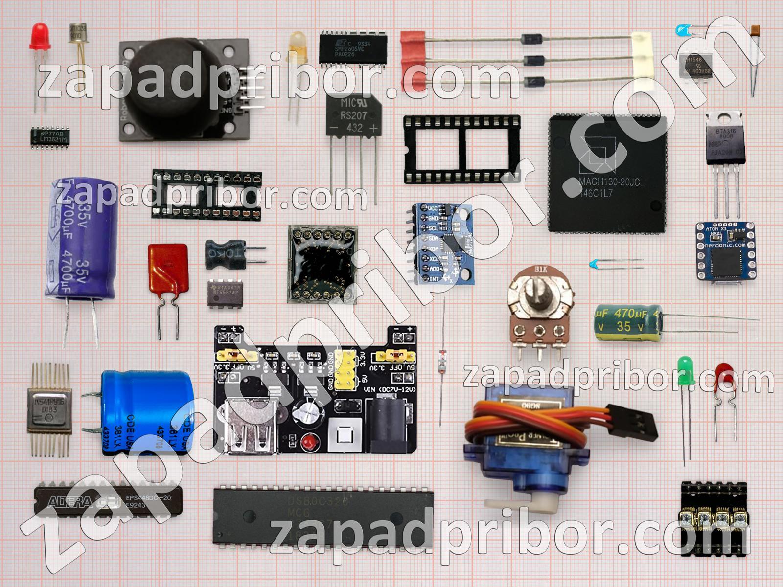 Кроме этих радиодеталей на нашем сайте вы сможете найти большой перечень компонентов. Осуществляйте поиск по основным типам радиодеталей таких как адаптер, разъем, транзистор, диод, диодный мост, микросхема, кнопка, преобразователь, трансформатор, датчик, резонатор, усилитель, переключатель, тиристор, дисплей, соединитель, экран, реле, светодиод, резистор, конденсатор, индуктивность, дроссель, индикатор, колодки, фотодиод, контакты, тумблер и другие.