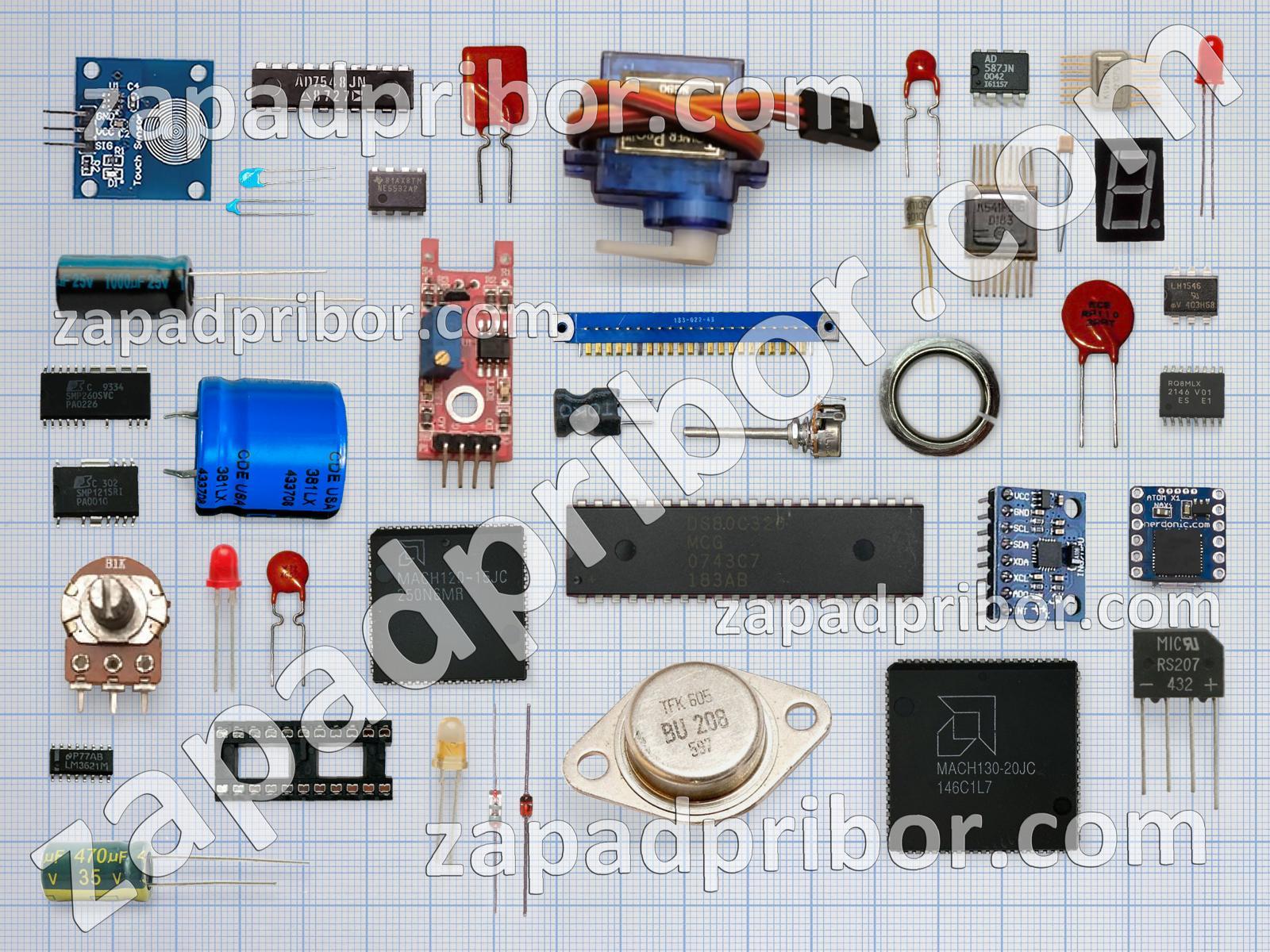 Кроме этих радиодеталей на нашем сайте вы сможете найти большой перечень компонентов. Осуществляйте поиск по основным типам радиодеталей таких как резонатор, кнопка, диод, разъем, дисплей, реле, конденсатор, контакты, усилитель, тумблер, резистор, преобразователь, трансформатор, транзистор, дроссель, индуктивность, индикатор, тиристор, переключатель, адаптер, светодиод, диодный мост, соединитель, фотодиод, датчик, колодки, экран, микросхема и другие.
