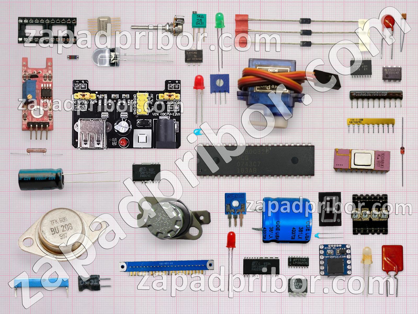 Кроме этих радиодеталей на нашем сайте вы сможете найти большой перечень компонентов. Осуществляйте поиск по основным типам радиодеталей таких как колодки, светодиод, усилитель, резистор, трансформатор, фотодиод, микросхема, контакты, конденсатор, реле, соединитель, транзистор, адаптер, датчик, тиристор, резонатор, разъем, кнопка, диод, дроссель, индикатор, дисплей, тумблер, индуктивность, диодный мост, переключатель, преобразователь, экран и другие.