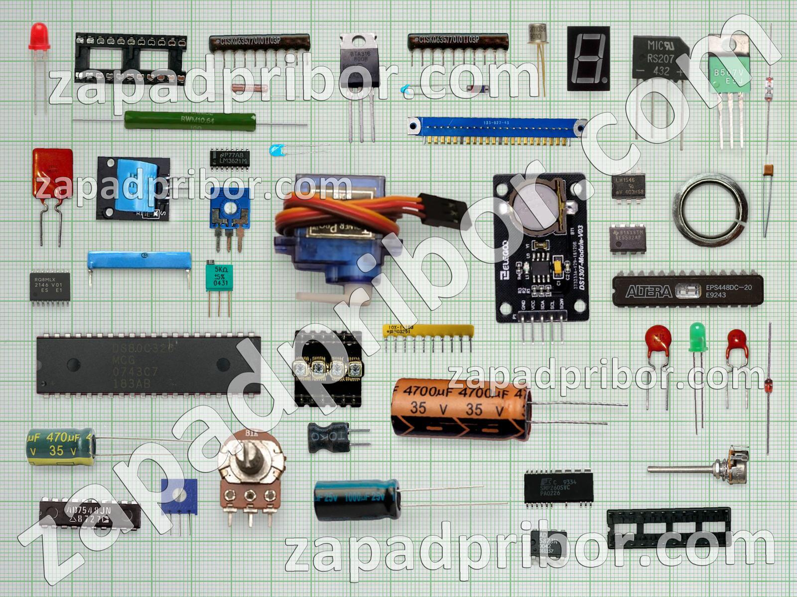 Кроме этих радиодеталей на нашем сайте вы сможете найти большой перечень компонентов. Осуществляйте поиск по основным типам радиодеталей таких как тумблер, светодиод, реле, трансформатор, контакты, усилитель, адаптер, индикатор, разъем, экран, дроссель, фотодиод, конденсатор, резонатор, колодки, диод, индуктивность, кнопка, датчик, тиристор, дисплей, соединитель, резистор, транзистор, диодный мост, переключатель, преобразователь, микросхема и другие.