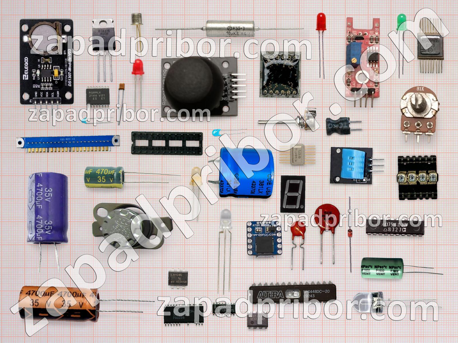 Кроме этих радиодеталей на нашем сайте вы сможете найти большой перечень компонентов. Осуществляйте поиск по основным типам радиодеталей таких как датчик, резонатор, индуктивность, контакты, колодки, соединитель, конденсатор, светодиод, трансформатор, реле, микросхема, резистор, дисплей, фотодиод, дроссель, тумблер, диод, адаптер, транзистор, преобразователь, диодный мост, тиристор, переключатель, усилитель, кнопка, экран, разъем, индикатор и другие.