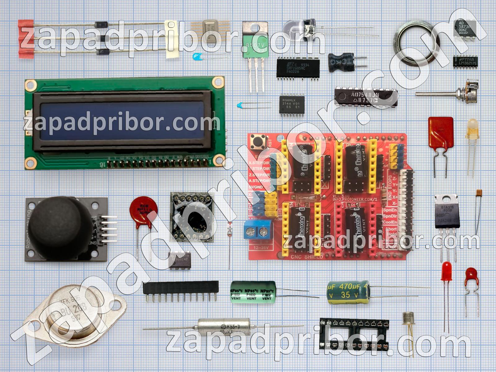 Кроме этих радиодеталей на нашем сайте вы сможете найти большой перечень компонентов. Осуществляйте поиск по основным типам радиодеталей таких как соединитель, переключатель, фотодиод, дисплей, контакты, транзистор, кнопка, микросхема, разъем, тиристор, конденсатор, реле, трансформатор, светодиод, усилитель, индуктивность, резистор, диод, дроссель, адаптер, датчик, преобразователь, экран, тумблер, диодный мост, индикатор, колодки, резонатор и другие.