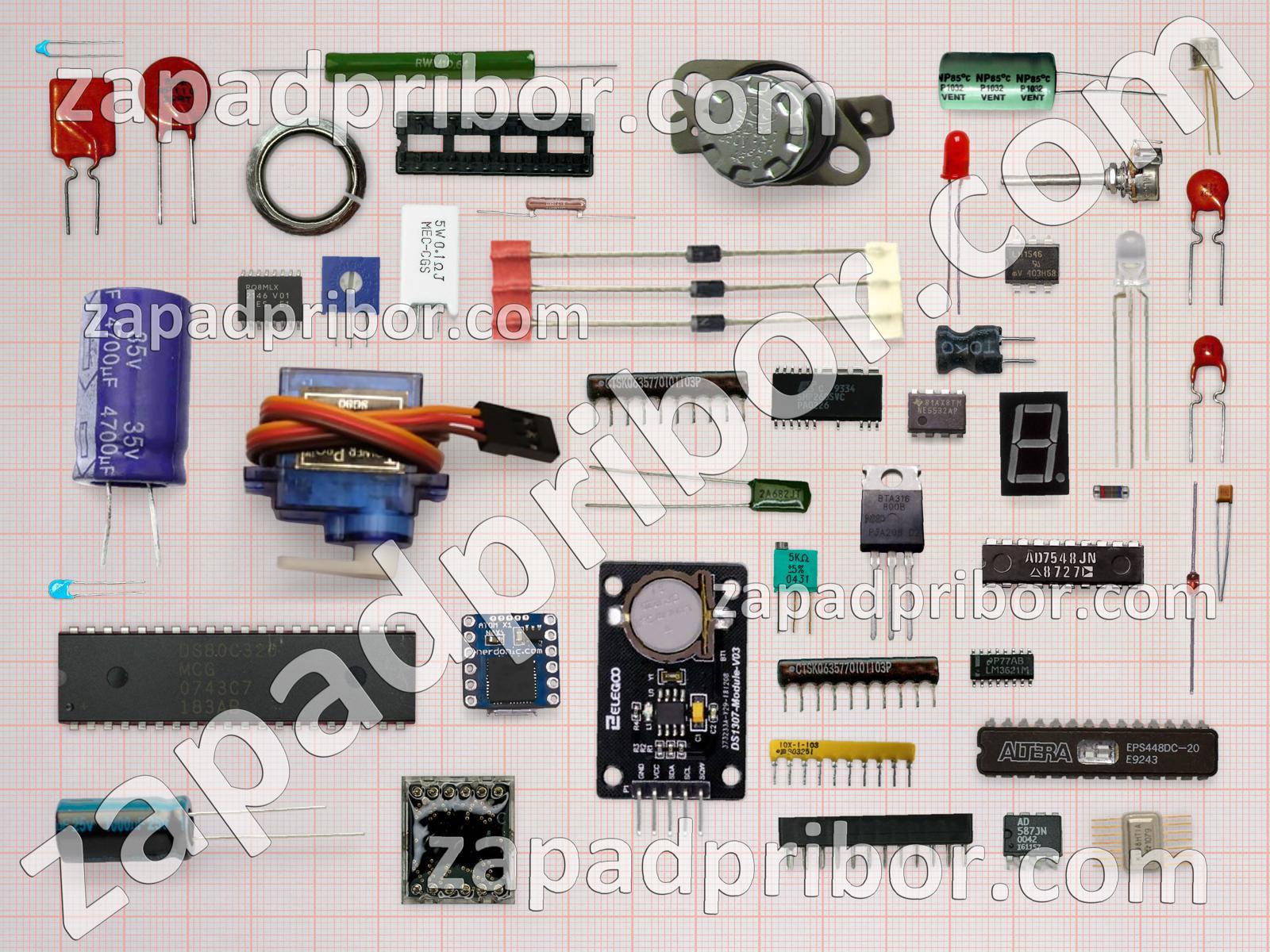Кроме этих радиодеталей на нашем сайте вы сможете найти большой перечень компонентов. Осуществляйте поиск по основным типам радиодеталей таких как колодки, экран, переключатель, дроссель, соединитель, индуктивность, дисплей, адаптер, транзистор, кнопка, тиристор, датчик, индикатор, преобразователь, трансформатор, светодиод, микросхема, резонатор, усилитель, реле, разъем, фотодиод, диодный мост, конденсатор, резистор, диод, контакты, тумблер и другие.