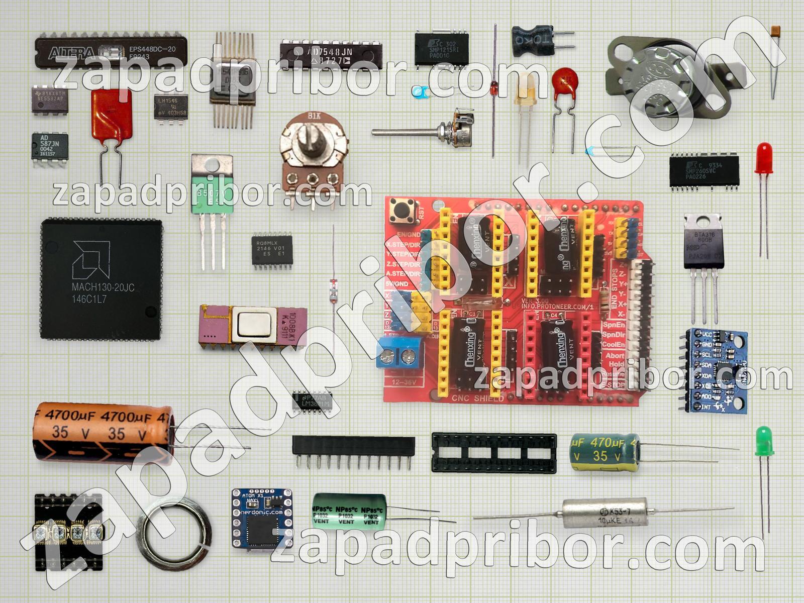 Кроме этих радиодеталей на нашем сайте вы сможете найти большой перечень компонентов. Осуществляйте поиск по основным типам радиодеталей таких как адаптер, разъем, транзистор, трансформатор, тиристор, резистор, контакты, индуктивность, индикатор, фотодиод, датчик, дисплей, реле, дроссель, усилитель, соединитель, резонатор, кнопка, тумблер, диодный мост, микросхема, конденсатор, преобразователь, экран, диод, светодиод, переключатель, колодки и другие.