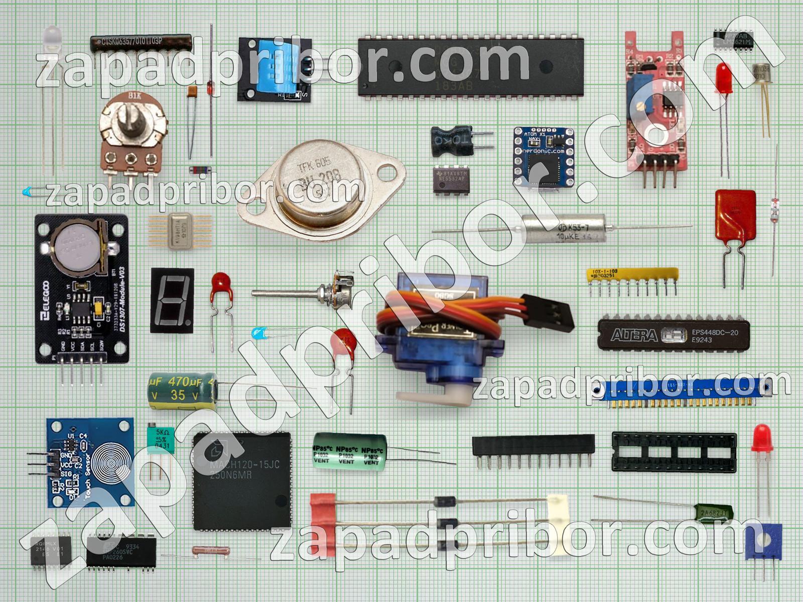 Кроме этих радиодеталей на нашем сайте вы сможете найти большой перечень компонентов. Осуществляйте поиск по основным типам радиодеталей таких как диод, диодный мост, реле, тиристор, тумблер, контакты, переключатель, конденсатор, экран, преобразователь, колодки, датчик, резистор, микросхема, дисплей, индикатор, индуктивность, адаптер, усилитель, дроссель, соединитель, транзистор, резонатор, фотодиод, кнопка, трансформатор, светодиод, разъем и другие.