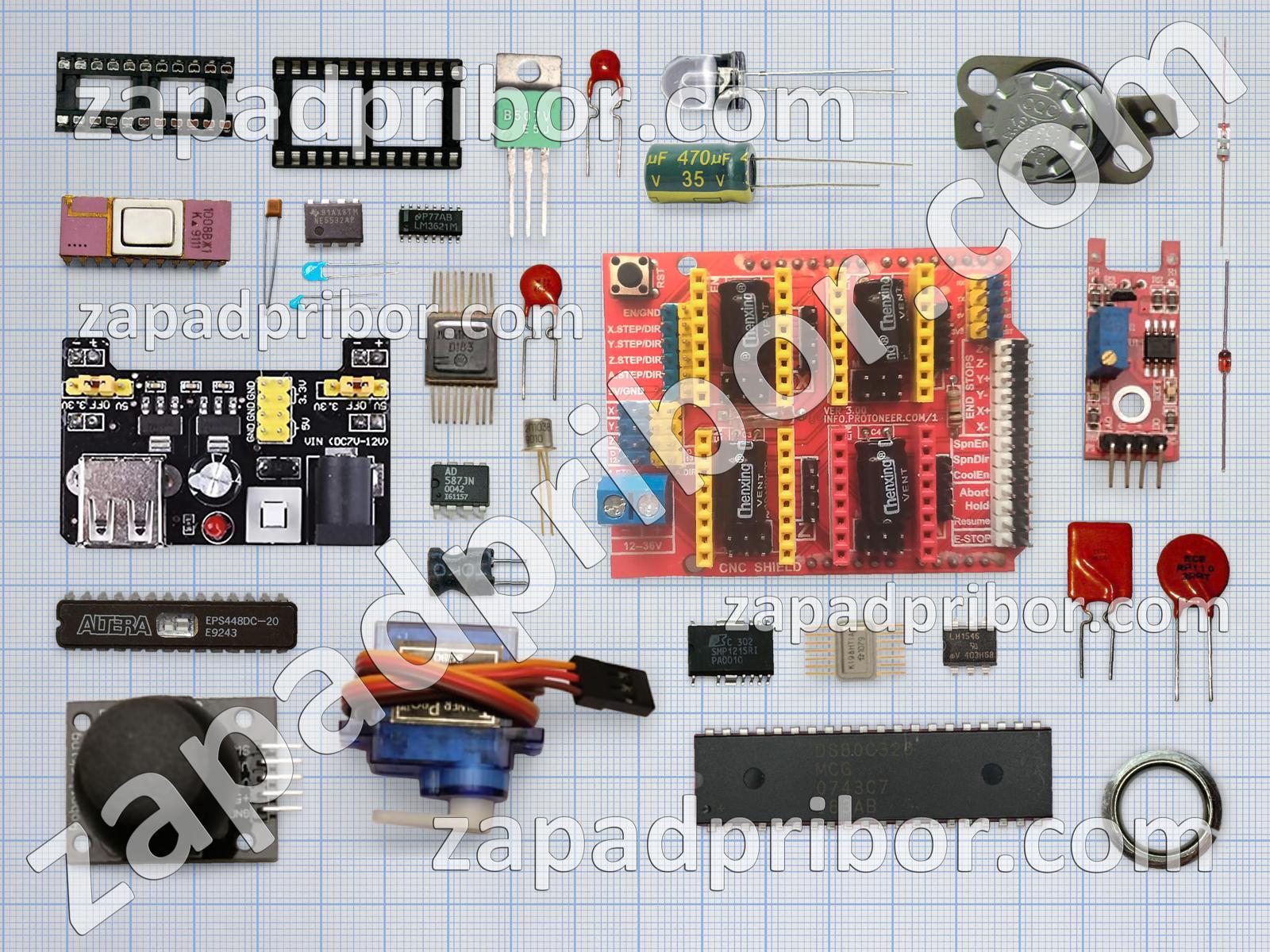 Кроме этих радиодеталей на нашем сайте вы сможете найти большой перечень компонентов. Осуществляйте поиск по основным типам радиодеталей таких как транзистор, дроссель, кнопка, индуктивность, соединитель, переключатель, усилитель, колодки, индикатор, фотодиод, резонатор, тумблер, датчик, преобразователь, резистор, контакты, экран, реле, микросхема, разъем, дисплей, адаптер, трансформатор, конденсатор, светодиод, диодный мост, диод, тиристор и другие.