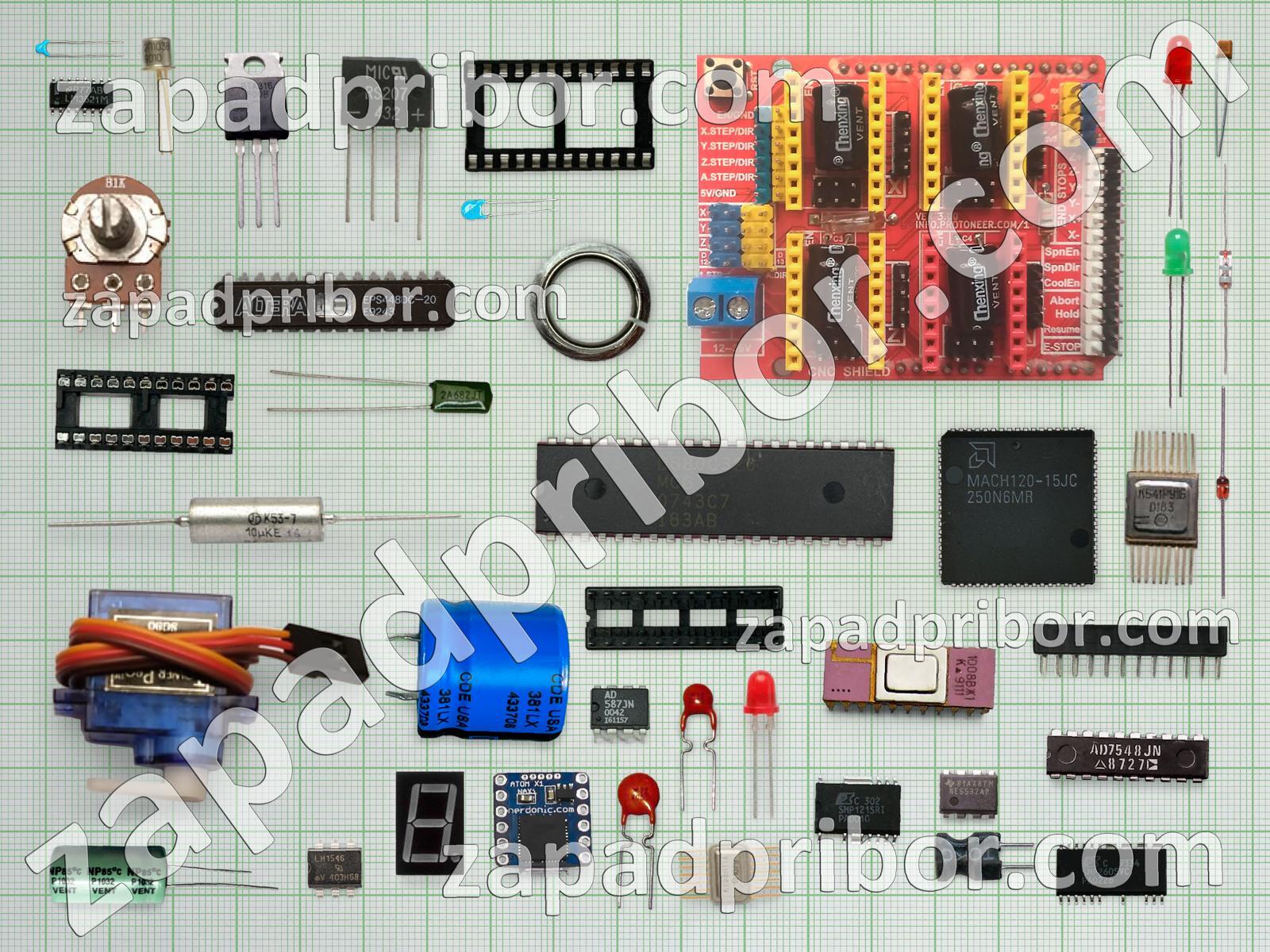 Кроме этих радиодеталей на нашем сайте вы сможете найти большой перечень компонентов. Осуществляйте поиск по основным типам радиодеталей таких как дроссель, разъем, индикатор, усилитель, диод, колодки, транзистор, трансформатор, экран, соединитель, преобразователь, контакты, микросхема, тиристор, конденсатор, резонатор, диодный мост, реле, дисплей, индуктивность, адаптер, кнопка, тумблер, фотодиод, резистор, светодиод, датчик, переключатель и другие.