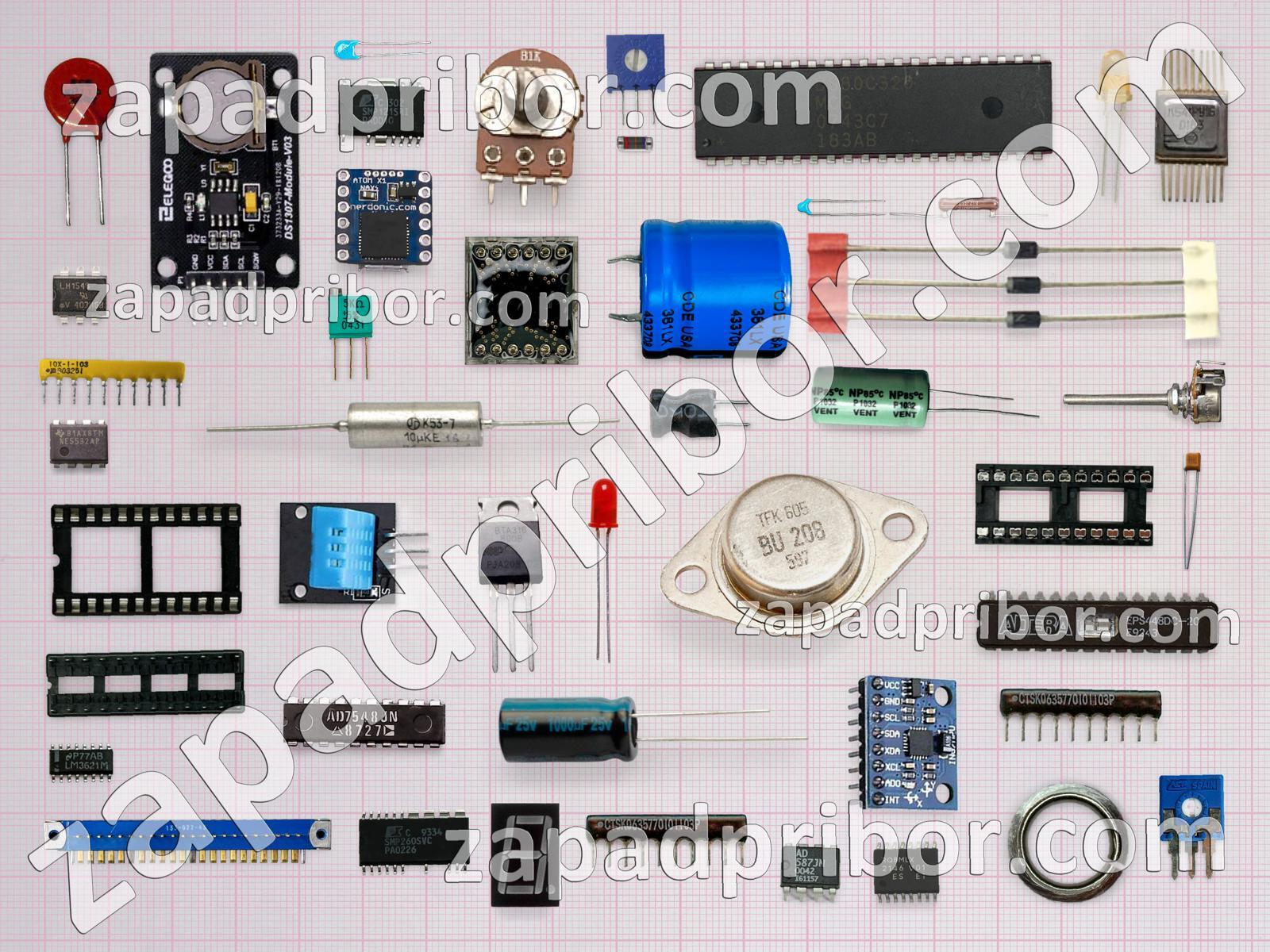 Кроме этих радиодеталей на нашем сайте вы сможете найти большой перечень компонентов. Осуществляйте поиск по основным типам радиодеталей таких как дроссель, индуктивность, тиристор, колодки, трансформатор, резистор, диодный мост, адаптер, резонатор, светодиод, индикатор, экран, тумблер, кнопка, реле, конденсатор, преобразователь, микросхема, датчик, переключатель, дисплей, соединитель, усилитель, фотодиод, транзистор, диод, разъем, контакты и другие.