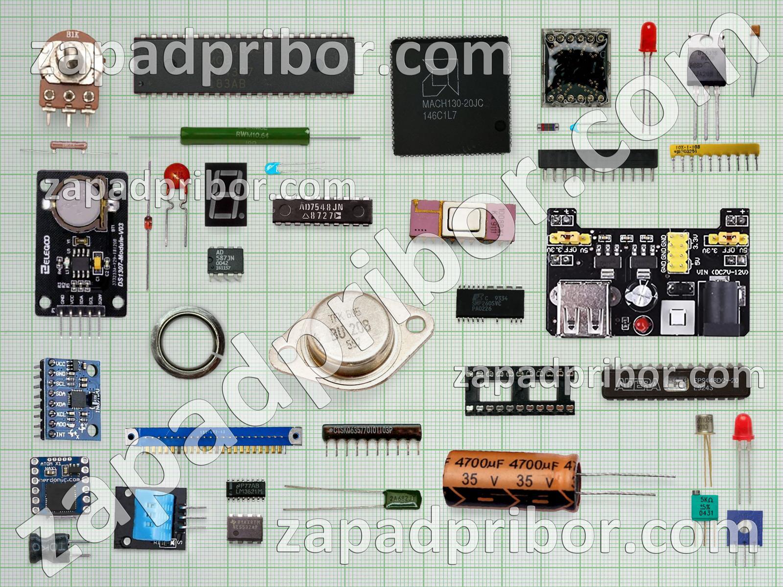 Кроме этих радиодеталей на нашем сайте вы сможете найти большой перечень компонентов. Осуществляйте поиск по основным типам радиодеталей таких как транзистор, контакты, дроссель, колодки, разъем, индикатор, резистор, датчик, соединитель, усилитель, диод, микросхема, реле, дисплей, конденсатор, кнопка, преобразователь, фотодиод, диодный мост, адаптер, экран, светодиод, индуктивность, переключатель, тиристор, трансформатор, тумблер, резонатор и другие.