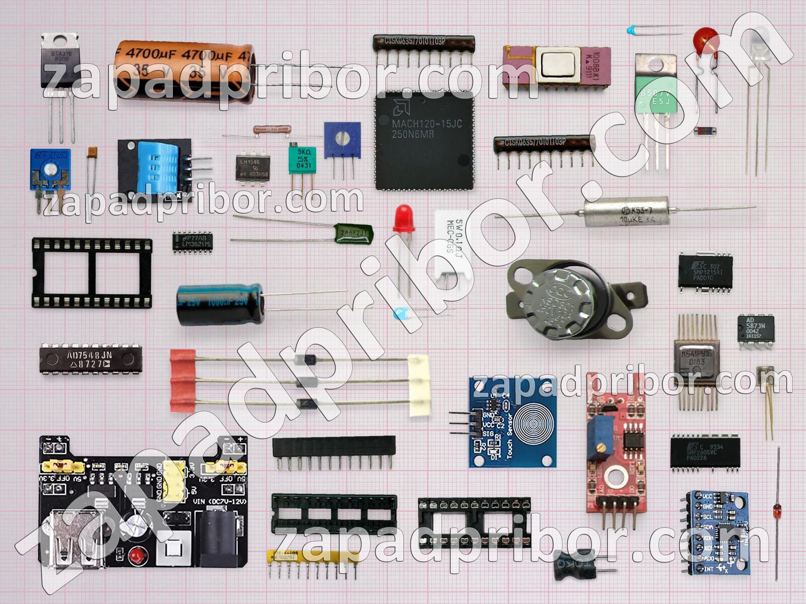 Кроме этих радиодеталей на нашем сайте вы сможете найти большой перечень компонентов. Осуществляйте поиск по основным типам радиодеталей таких как микросхема, диод, дроссель, разъем, усилитель, тиристор, транзистор, резистор, адаптер, контакты, преобразователь, тумблер, переключатель, экран, индикатор, кнопка, соединитель, индуктивность, светодиод, фотодиод, трансформатор, дисплей, резонатор, датчик, колодки, диодный мост, реле, конденсатор и другие.