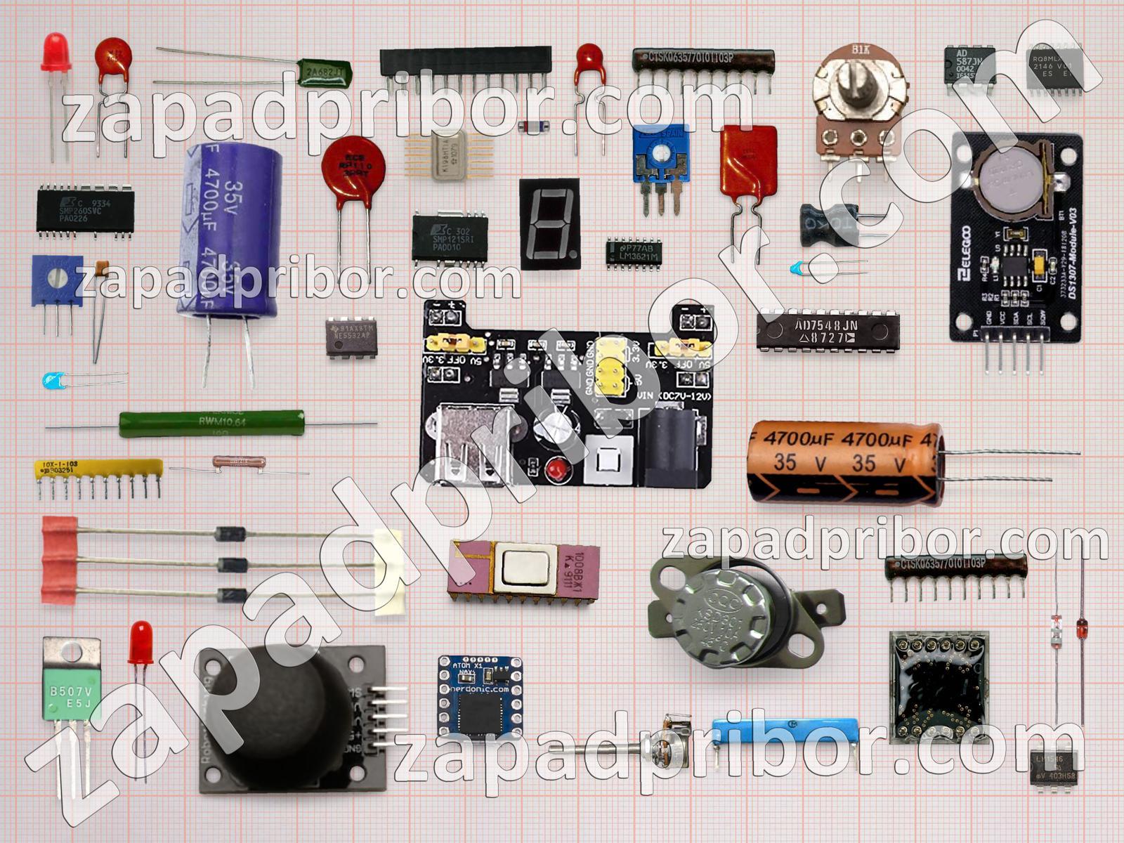 Кроме этих радиодеталей на нашем сайте вы сможете найти большой перечень компонентов. Осуществляйте поиск по основным типам радиодеталей таких как резистор, экран, трансформатор, дроссель, переключатель, тиристор, микросхема, светодиод, разъем, адаптер, соединитель, усилитель, транзистор, тумблер, кнопка, резонатор, индуктивность, преобразователь, индикатор, диод, конденсатор, фотодиод, колодки, реле, дисплей, диодный мост, датчик, контакты и другие.