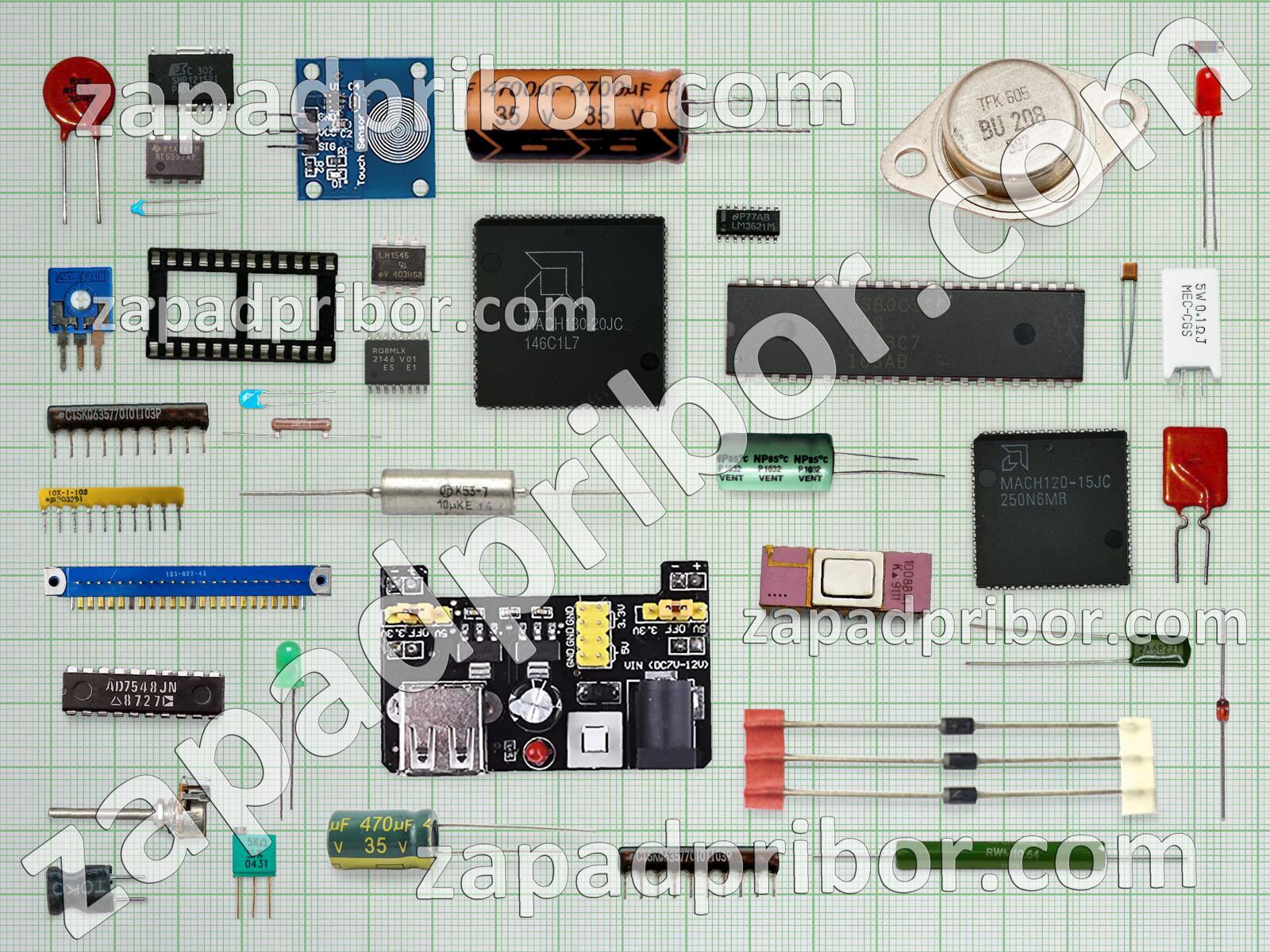 Кроме этих радиодеталей на нашем сайте вы сможете найти большой перечень компонентов. Осуществляйте поиск по основным типам радиодеталей таких как микросхема, кнопка, дисплей, индуктивность, трансформатор, адаптер, разъем, соединитель, реле, экран, преобразователь, резонатор, тиристор, усилитель, тумблер, колодки, диодный мост, переключатель, индикатор, светодиод, транзистор, дроссель, контакты, фотодиод, резистор, конденсатор, диод, датчик и другие.
