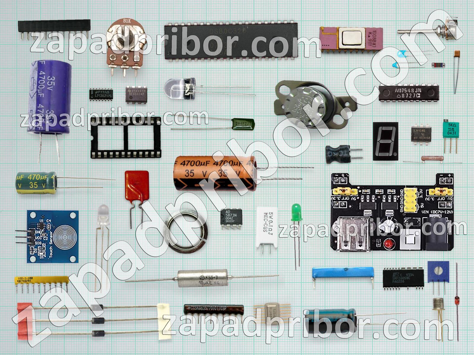Кроме этих радиодеталей на нашем сайте вы сможете найти большой перечень компонентов. Осуществляйте поиск по основным типам радиодеталей таких как диод, резонатор, микросхема, дисплей, индуктивность, адаптер, фотодиод, дроссель, индикатор, резистор, переключатель, колодки, конденсатор, реле, экран, усилитель, трансформатор, преобразователь, диодный мост, транзистор, тумблер, тиристор, светодиод, кнопка, разъем, контакты, датчик, соединитель и другие.