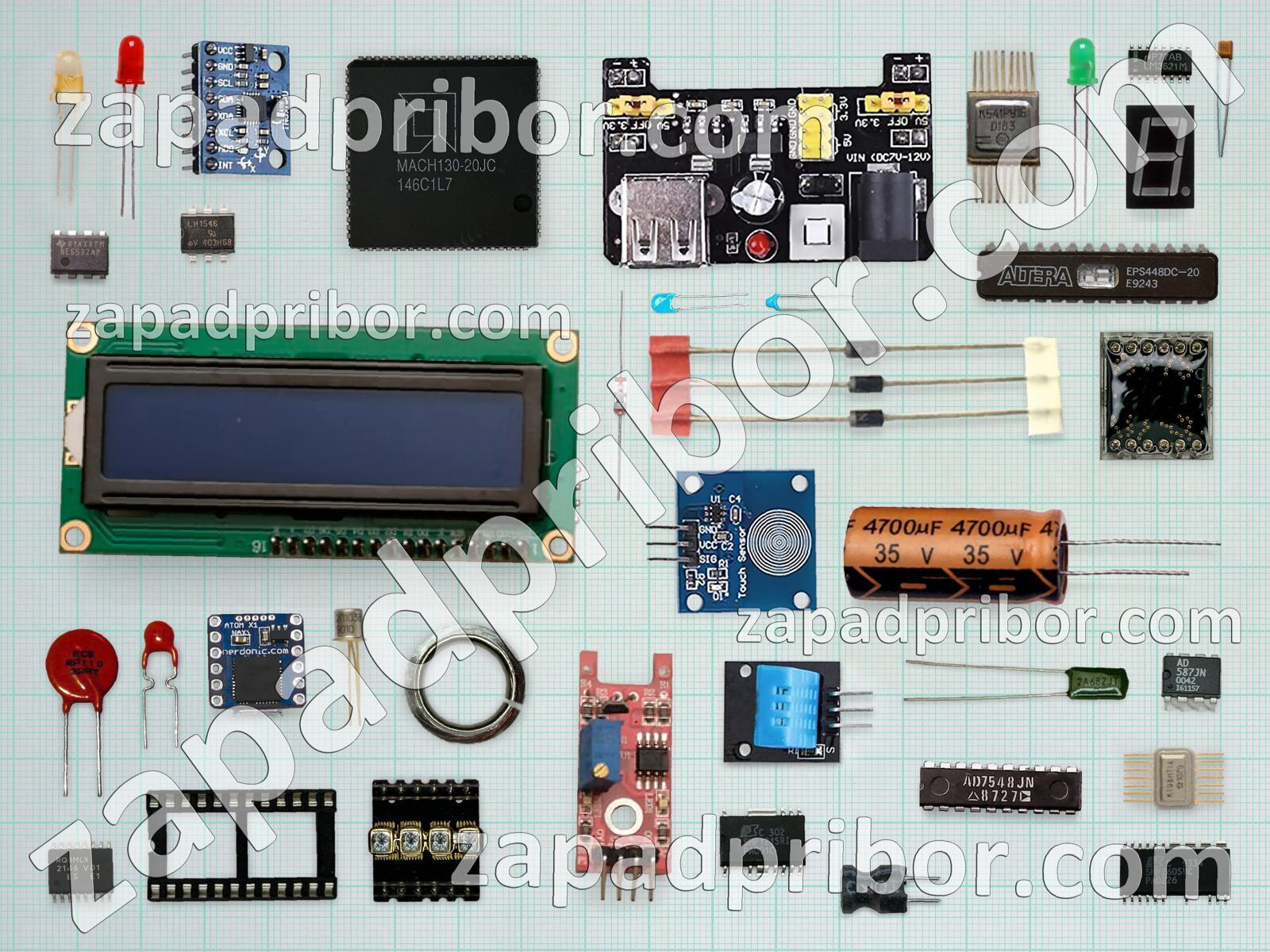 Кроме этих радиодеталей на нашем сайте вы сможете найти большой перечень компонентов. Осуществляйте поиск по основным типам радиодеталей таких как конденсатор, колодки, контакты, светодиод, реле, тиристор, дроссель, экран, датчик, кнопка, резистор, усилитель, трансформатор, переключатель, соединитель, транзистор, тумблер, индуктивность, преобразователь, диод, индикатор, фотодиод, адаптер, микросхема, резонатор, диодный мост, дисплей, разъем и другие.