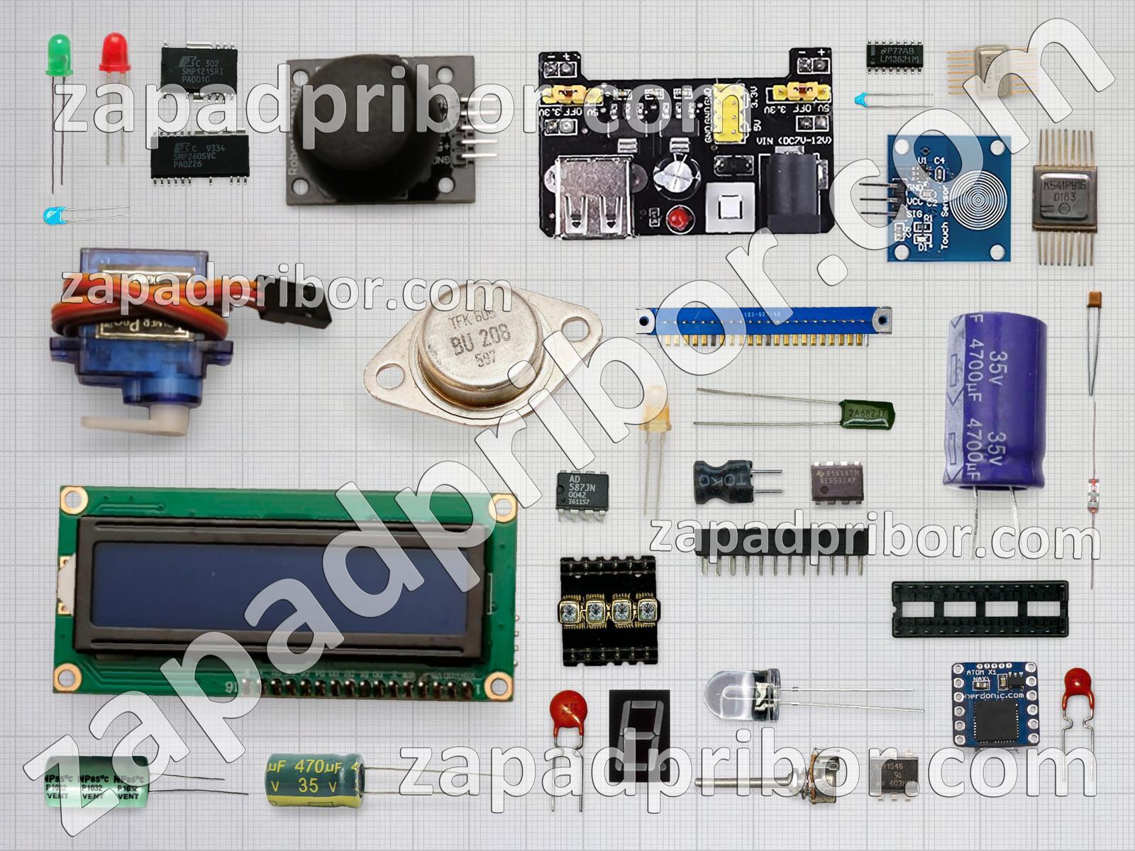 Кроме этих радиодеталей на нашем сайте вы сможете найти большой перечень компонентов. Осуществляйте поиск по основным типам радиодеталей таких как адаптер, экран, контакты, разъем, преобразователь, резонатор, светодиод, усилитель, кнопка, тиристор, индуктивность, дисплей, фотодиод, переключатель, конденсатор, колодки, тумблер, индикатор, соединитель, трансформатор, диод, реле, транзистор, диодный мост, датчик, микросхема, резистор, дроссель и другие.