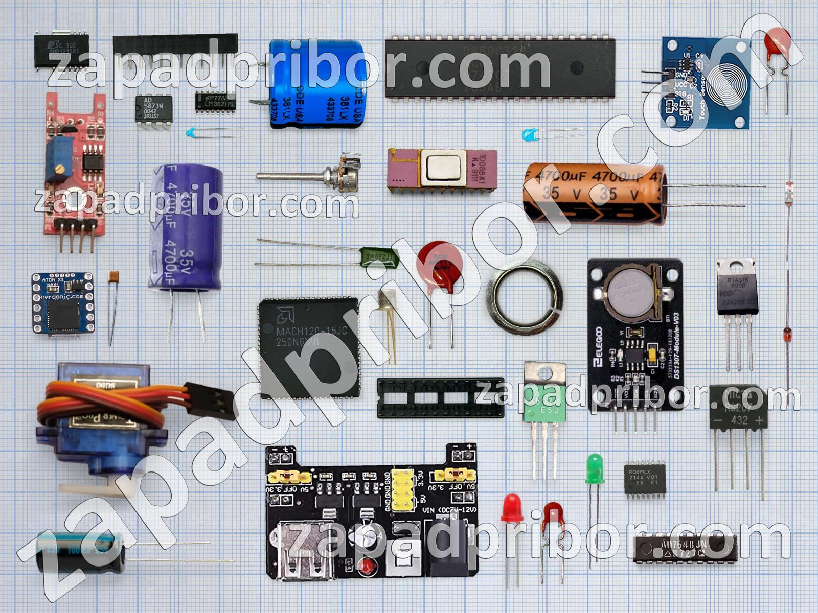 Кроме этих радиодеталей на нашем сайте вы сможете найти большой перечень компонентов. Осуществляйте поиск по основным типам радиодеталей таких как резонатор, преобразователь, усилитель, трансформатор, дисплей, дроссель, тиристор, светодиод, резистор, индикатор, микросхема, конденсатор, диодный мост, диод, колодки, датчик, адаптер, реле, индуктивность, контакты, соединитель, переключатель, тумблер, фотодиод, разъем, экран, кнопка, транзистор и другие.