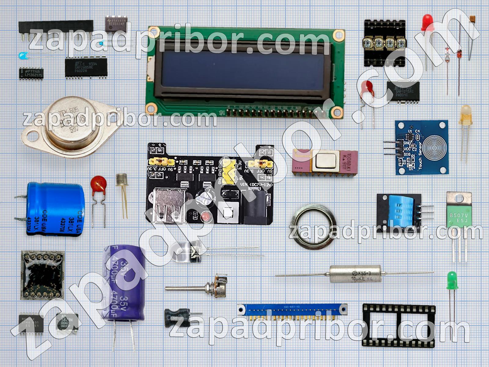 Кроме этих радиодеталей на нашем сайте вы сможете найти большой перечень компонентов. Осуществляйте поиск по основным типам радиодеталей таких как конденсатор, кнопка, индуктивность, датчик, диод, адаптер, резистор, микросхема, экран, трансформатор, преобразователь, дисплей, усилитель, переключатель, колодки, тиристор, контакты, диодный мост, разъем, дроссель, светодиод, резонатор, соединитель, тумблер, фотодиод, индикатор, транзистор, реле и другие.