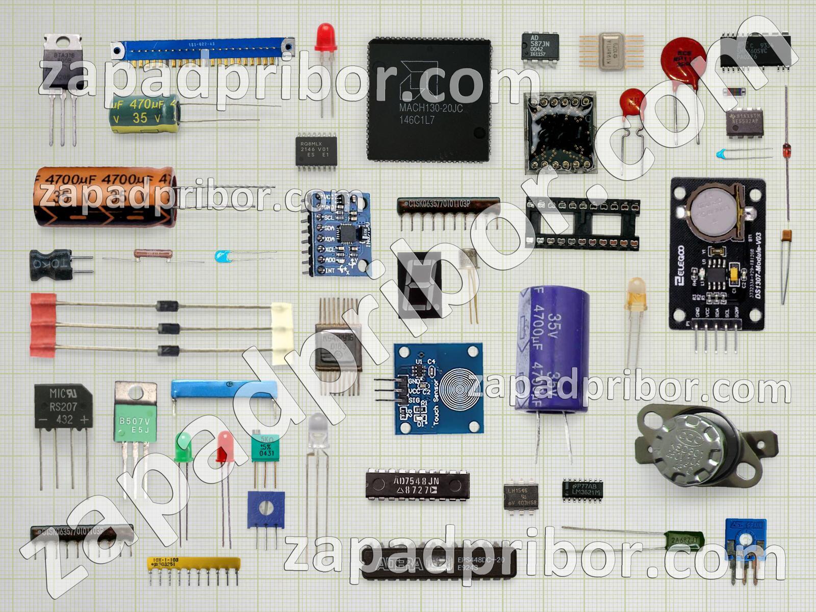 Кроме этих радиодеталей на нашем сайте вы сможете найти большой перечень компонентов. Осуществляйте поиск по основным типам радиодеталей таких как транзистор, соединитель, разъем, фотодиод, дисплей, трансформатор, переключатель, резонатор, индикатор, диодный мост, тиристор, конденсатор, резистор, контакты, тумблер, усилитель, кнопка, реле, диод, светодиод, индуктивность, дроссель, экран, микросхема, колодки, адаптер, преобразователь, датчик и другие.
