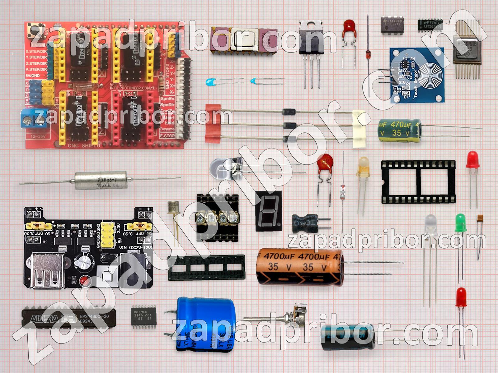 Кроме этих радиодеталей на нашем сайте вы сможете найти большой перечень компонентов. Осуществляйте поиск по основным типам радиодеталей таких как соединитель, светодиод, колодки, контакты, преобразователь, тиристор, фотодиод, диод, резистор, тумблер, дроссель, усилитель, адаптер, индуктивность, резонатор, экран, реле, кнопка, датчик, трансформатор, микросхема, разъем, переключатель, дисплей, транзистор, диодный мост, индикатор, конденсатор и другие.