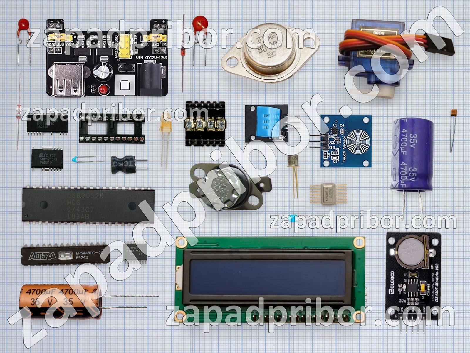 Кроме этих радиодеталей на нашем сайте вы сможете найти большой перечень компонентов. Осуществляйте поиск по основным типам радиодеталей таких как микросхема, индикатор, датчик, индуктивность, колодки, адаптер, трансформатор, соединитель, дисплей, тумблер, переключатель, фотодиод, резистор, кнопка, диодный мост, разъем, дроссель, преобразователь, светодиод, контакты, резонатор, транзистор, экран, тиристор, реле, усилитель, диод, конденсатор и другие.
