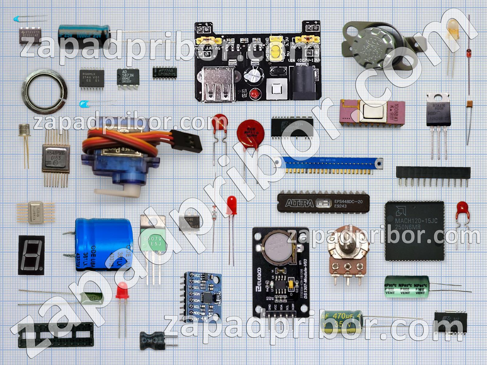 Кроме этих радиодеталей на нашем сайте вы сможете найти большой перечень компонентов. Осуществляйте поиск по основным типам радиодеталей таких как конденсатор, диод, микросхема, светодиод, индуктивность, диодный мост, фотодиод, реле, индикатор, кнопка, резистор, тиристор, колодки, соединитель, трансформатор, усилитель, разъем, дисплей, преобразователь, дроссель, транзистор, переключатель, адаптер, резонатор, контакты, датчик, экран, тумблер и другие.