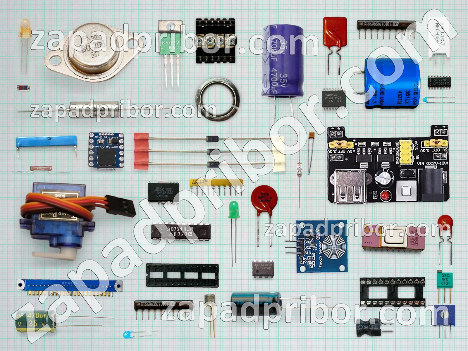 Кроме этих радиодеталей на нашем сайте вы сможете найти большой перечень компонентов. Осуществляйте поиск по основным типам радиодеталей таких как датчик, тумблер, диод, преобразователь, переключатель, индуктивность, диодный мост, соединитель, фотодиод, резонатор, усилитель, резистор, разъем, дроссель, трансформатор, транзистор, контакты, индикатор, светодиод, дисплей, экран, адаптер, конденсатор, колодки, тиристор, микросхема, реле, кнопка и другие.