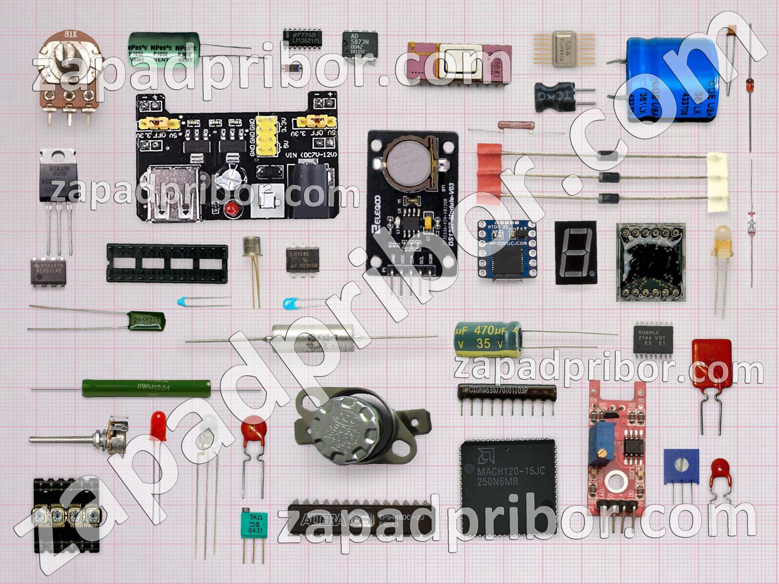 Кроме этих радиодеталей на нашем сайте вы сможете найти большой перечень компонентов. Осуществляйте поиск по основным типам радиодеталей таких как конденсатор, усилитель, датчик, трансформатор, транзистор, дисплей, экран, микросхема, индикатор, контакты, индуктивность, колодки, фотодиод, адаптер, тумблер, тиристор, диодный мост, разъем, переключатель, соединитель, реле, диод, резистор, кнопка, светодиод, преобразователь, дроссель, резонатор и другие.