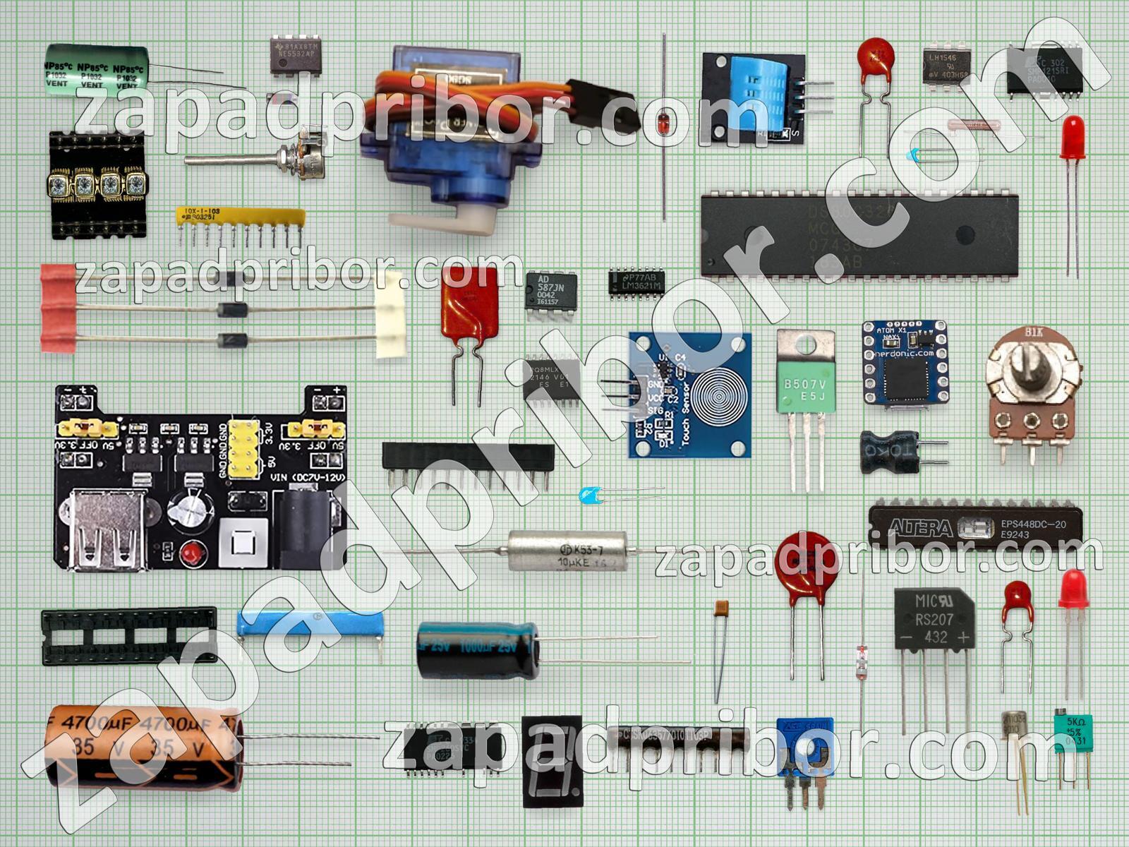 Кроме этих радиодеталей на нашем сайте вы сможете найти большой перечень компонентов. Осуществляйте поиск по основным типам радиодеталей таких как преобразователь, колодки, дисплей, кнопка, светодиод, индикатор, микросхема, переключатель, контакты, резонатор, усилитель, резистор, дроссель, индуктивность, тумблер, тиристор, датчик, диодный мост, конденсатор, реле, диод, адаптер, транзистор, трансформатор, соединитель, разъем, фотодиод, экран и другие.