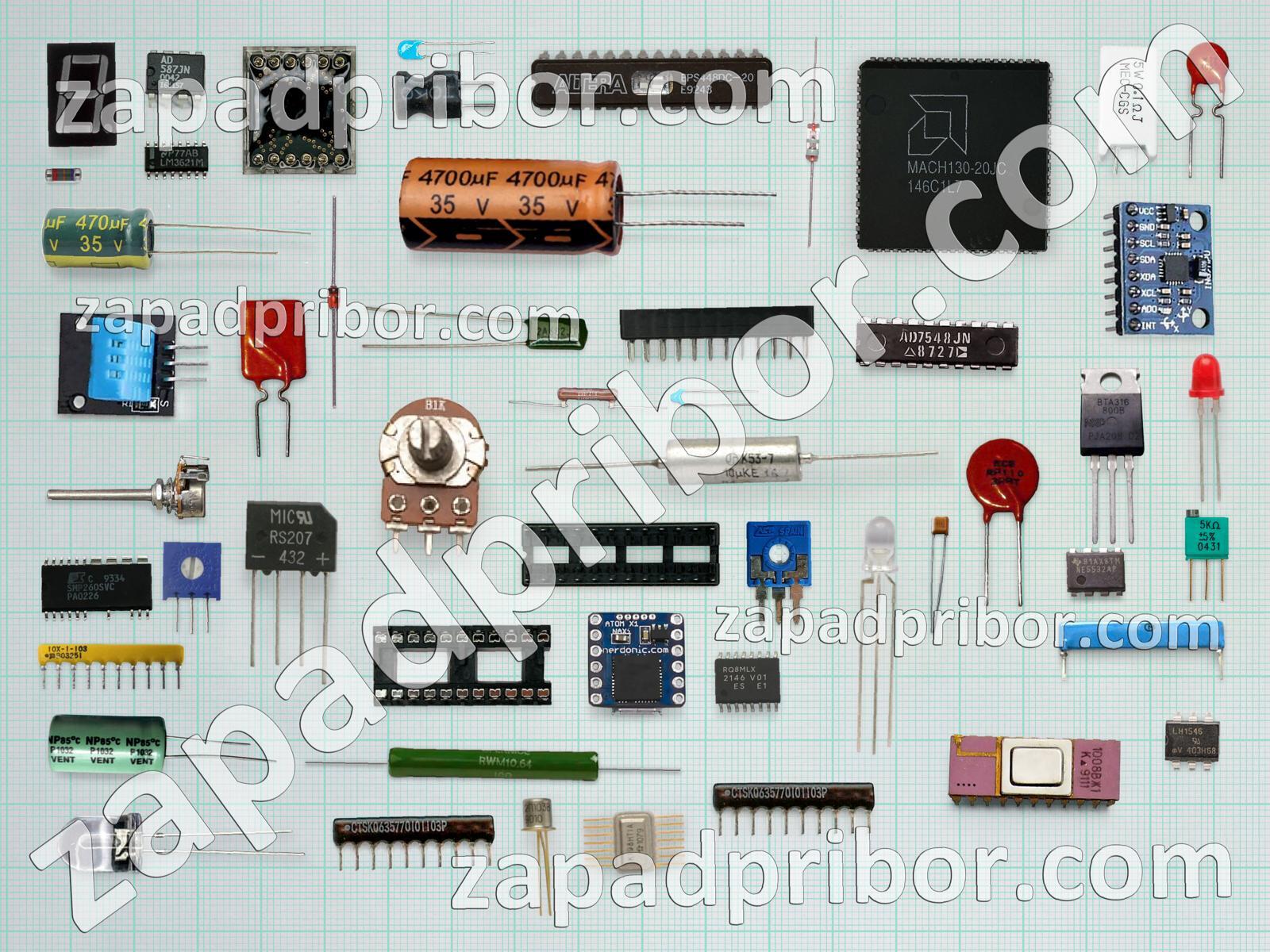 Кроме этих радиодеталей на нашем сайте вы сможете найти большой перечень компонентов. Осуществляйте поиск по основным типам радиодеталей таких как кнопка, преобразователь, экран, диод, разъем, резонатор, фотодиод, индуктивность, резистор, усилитель, трансформатор, дроссель, конденсатор, адаптер, светодиод, тиристор, тумблер, соединитель, реле, датчик, колодки, дисплей, диодный мост, контакты, индикатор, микросхема, переключатель, транзистор и другие.