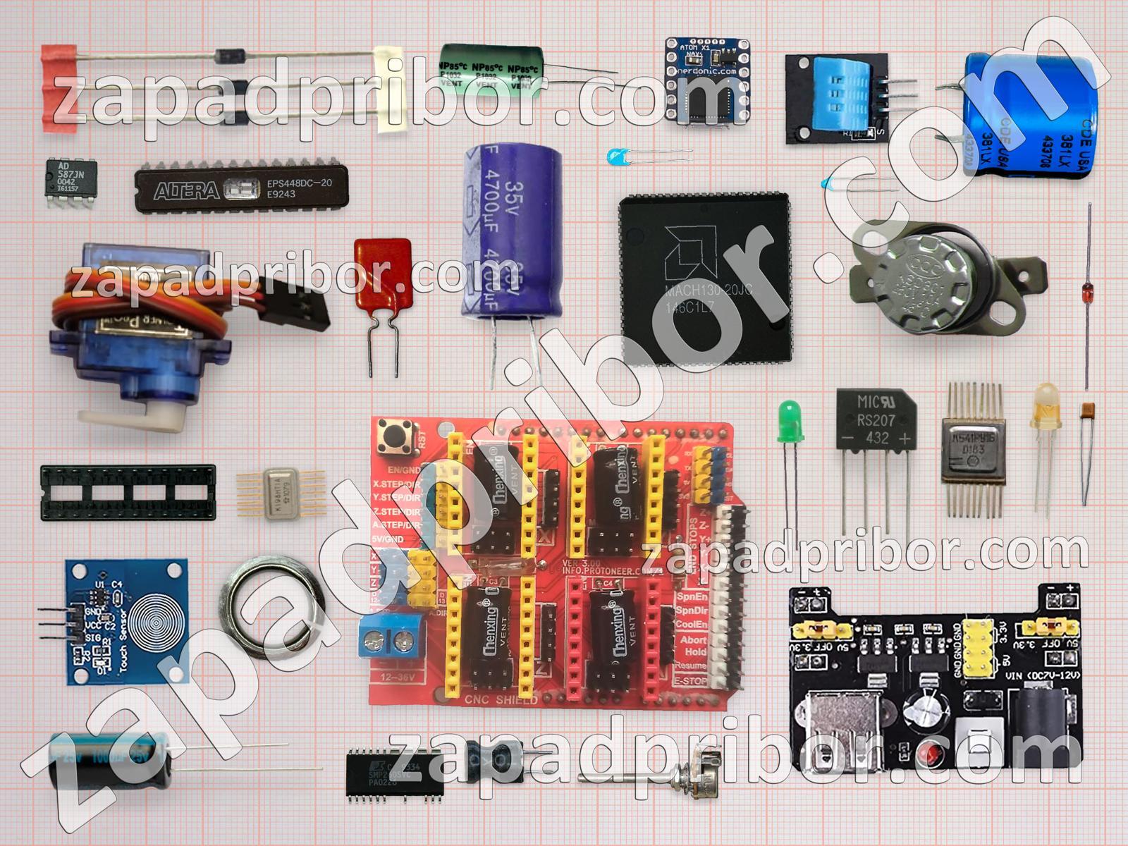 Кроме этих радиодеталей на нашем сайте вы сможете найти большой перечень компонентов. Осуществляйте поиск по основным типам радиодеталей таких как индикатор, индуктивность, колодки, конденсатор, кнопка, транзистор, резонатор, переключатель, реле, дроссель, экран, датчик, контакты, диод, усилитель, соединитель, преобразователь, трансформатор, светодиод, диодный мост, микросхема, адаптер, тумблер, разъем, тиристор, дисплей, резистор, фотодиод и другие.