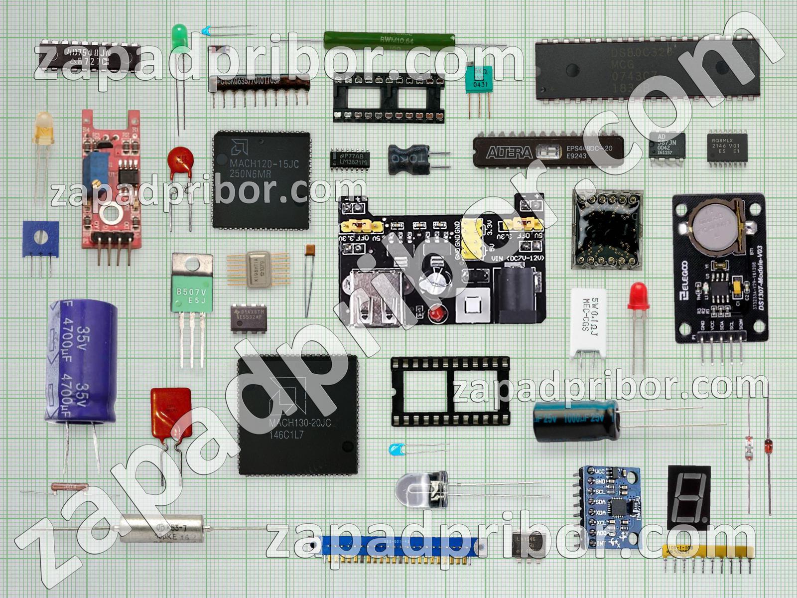 Кроме этих радиодеталей на нашем сайте вы сможете найти большой перечень компонентов. Осуществляйте поиск по основным типам радиодеталей таких как колодки, дисплей, транзистор, адаптер, индуктивность, конденсатор, диод, датчик, реле, разъем, контакты, тиристор, резонатор, усилитель, дроссель, фотодиод, переключатель, светодиод, резистор, микросхема, диодный мост, кнопка, тумблер, соединитель, трансформатор, индикатор, преобразователь, экран и другие.