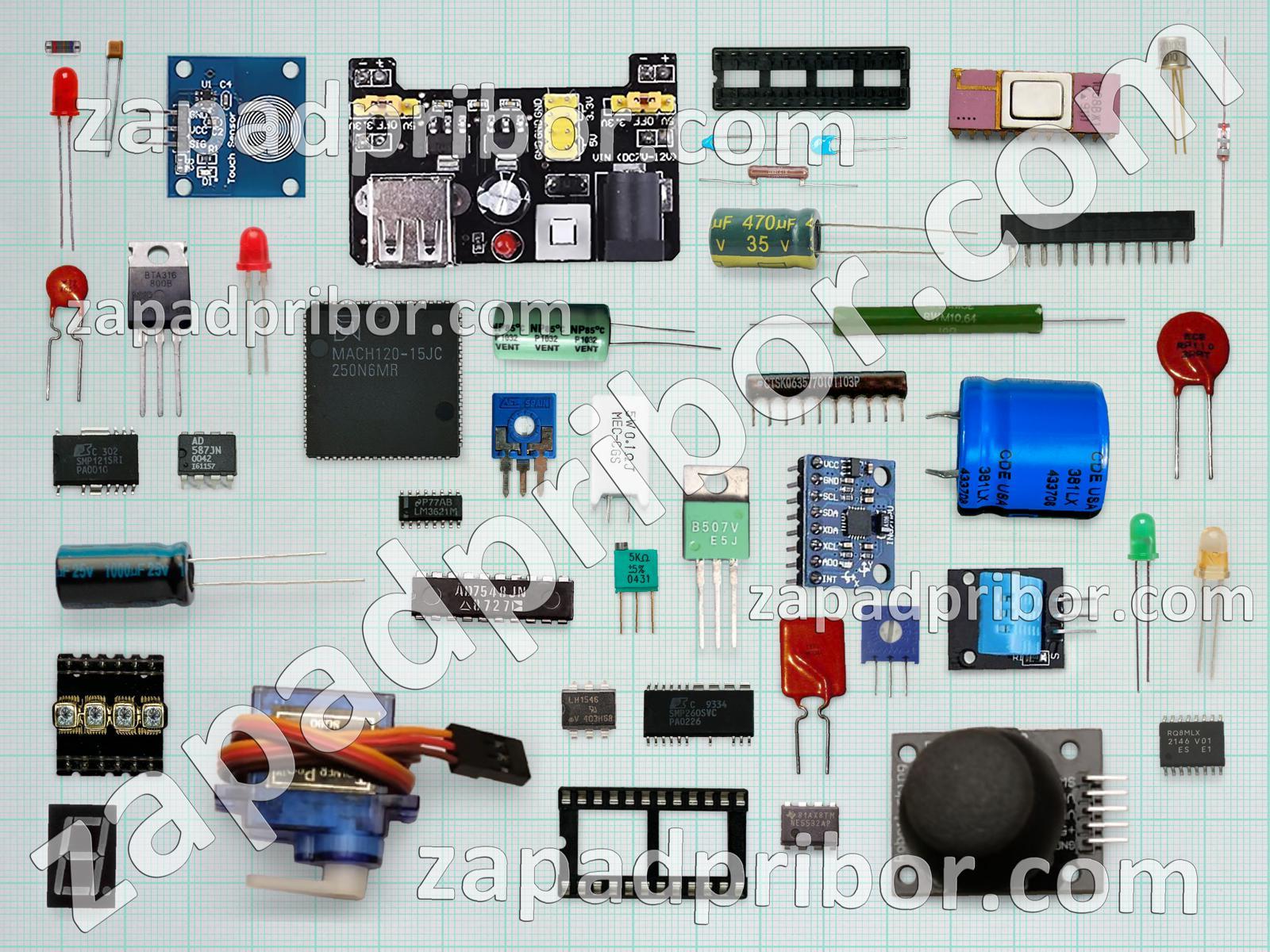 Кроме этих радиодеталей на нашем сайте вы сможете найти большой перечень компонентов. Осуществляйте поиск по основным типам радиодеталей таких как резонатор, переключатель, колодки, индуктивность, индикатор, экран, тумблер, усилитель, трансформатор, соединитель, тиристор, контакты, микросхема, кнопка, разъем, дисплей, резистор, диодный мост, дроссель, конденсатор, адаптер, светодиод, диод, реле, преобразователь, транзистор, датчик, фотодиод и другие.