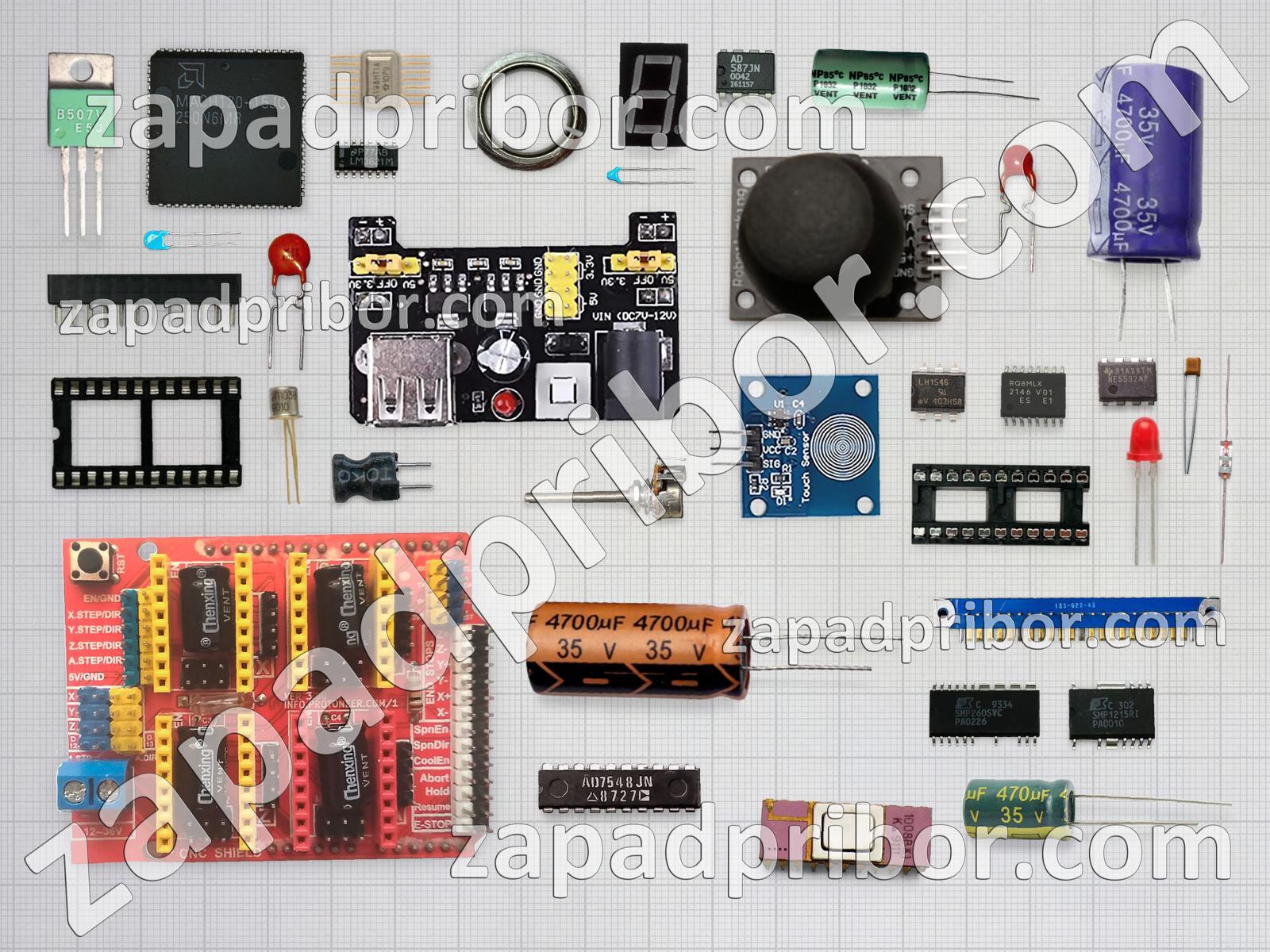 Кроме этих радиодеталей на нашем сайте вы сможете найти большой перечень компонентов. Осуществляйте поиск по основным типам радиодеталей таких как фотодиод, транзистор, тумблер, реле, кнопка, разъем, экран, диод, тиристор, преобразователь, датчик, дроссель, микросхема, конденсатор, индуктивность, резонатор, соединитель, колодки, контакты, индикатор, переключатель, светодиод, адаптер, резистор, дисплей, усилитель, трансформатор, диодный мост и другие.