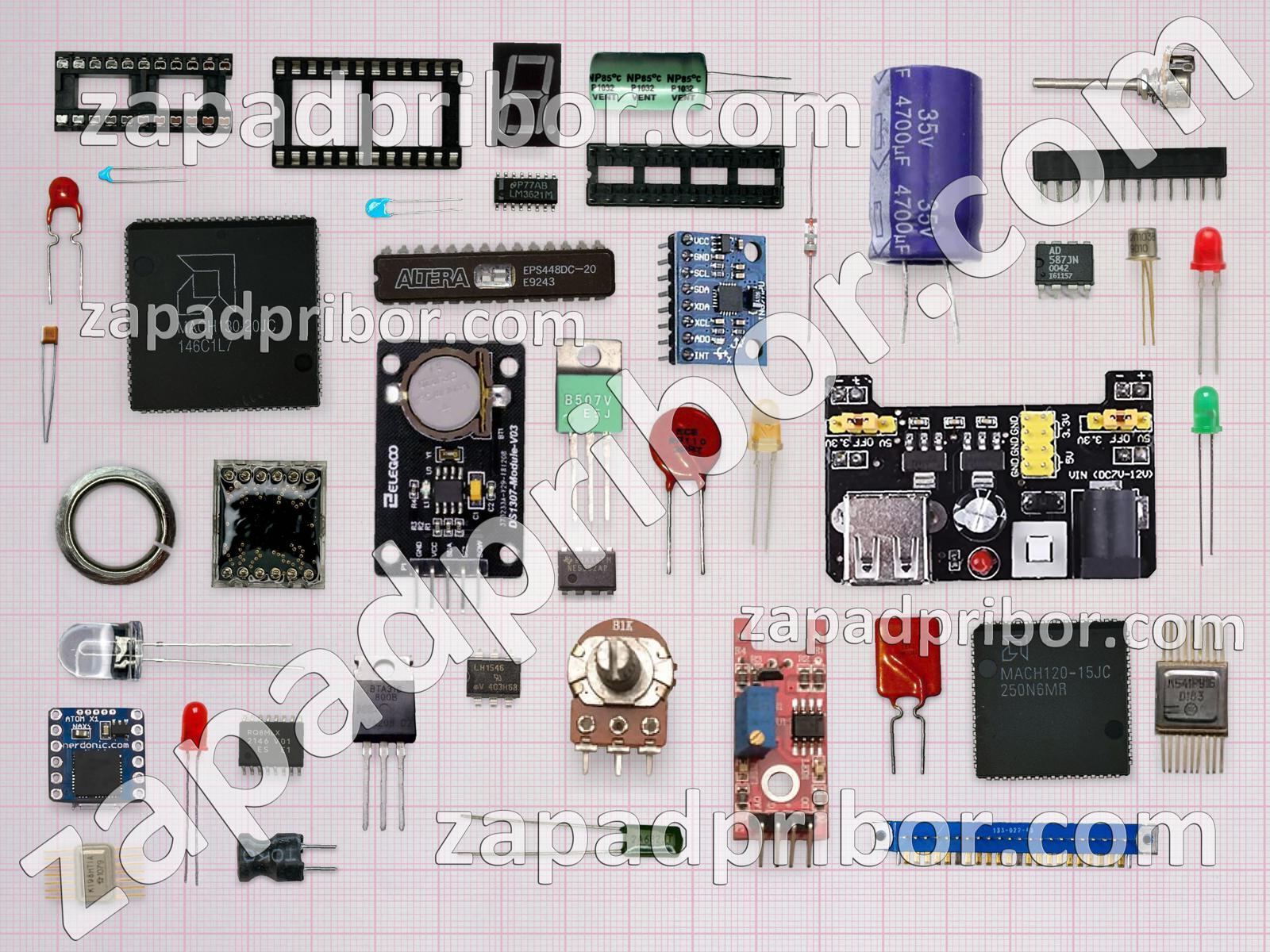 Кроме этих радиодеталей на нашем сайте вы сможете найти большой перечень компонентов. Осуществляйте поиск по основным типам радиодеталей таких как переключатель, соединитель, резонатор, колодки, трансформатор, усилитель, индикатор, датчик, индуктивность, преобразователь, адаптер, кнопка, контакты, дроссель, реле, транзистор, диод, конденсатор, тумблер, разъем, микросхема, экран, резистор, дисплей, фотодиод, тиристор, светодиод, диодный мост и другие.