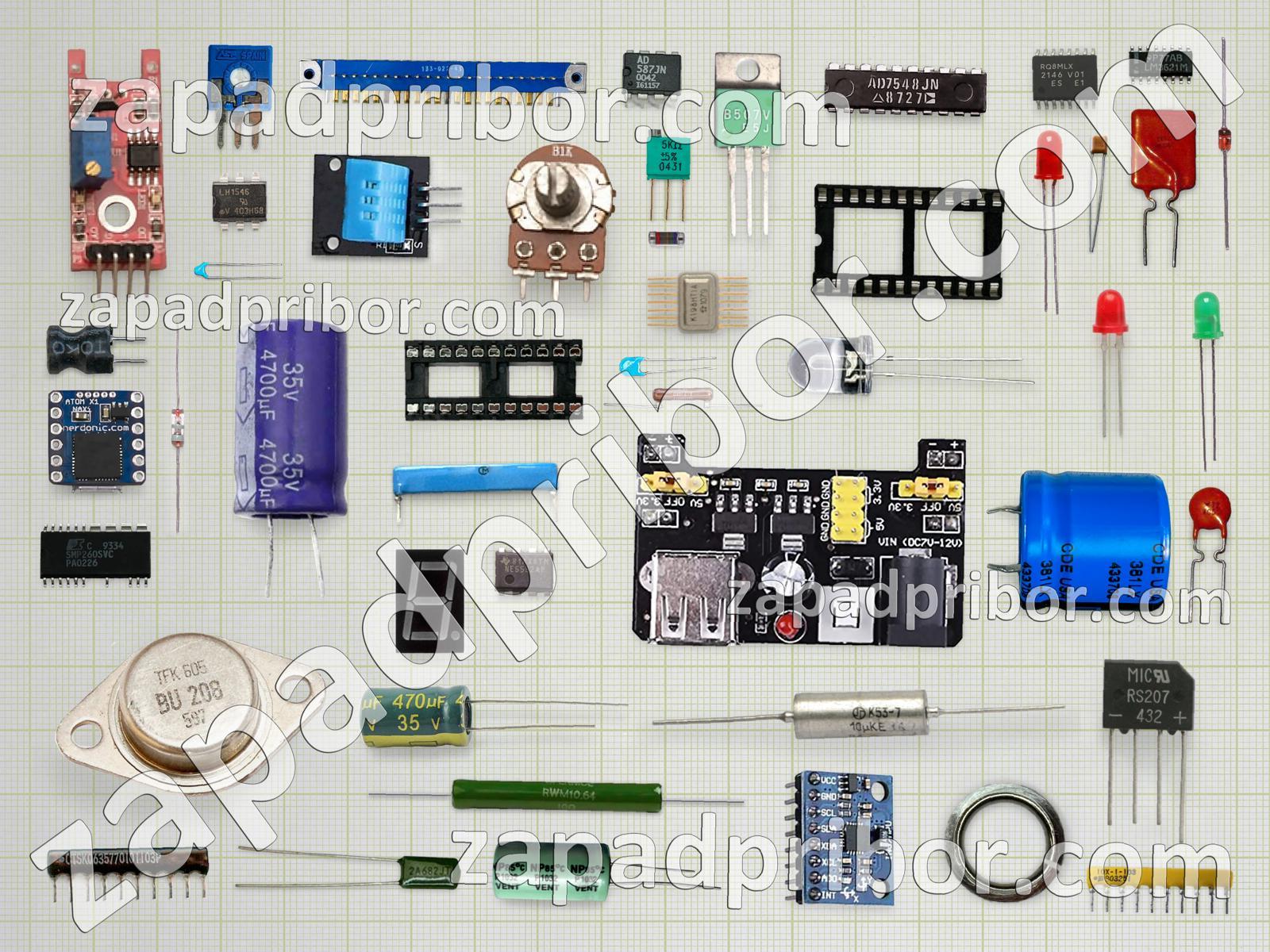 Кроме этих радиодеталей на нашем сайте вы сможете найти большой перечень компонентов. Осуществляйте поиск по основным типам радиодеталей таких как тумблер, резистор, дроссель, соединитель, светодиод, реле, трансформатор, датчик, разъем, адаптер, экран, фотодиод, диодный мост, индикатор, резонатор, конденсатор, колодки, переключатель, кнопка, преобразователь, дисплей, диод, транзистор, контакты, тиристор, микросхема, индуктивность, усилитель и другие.