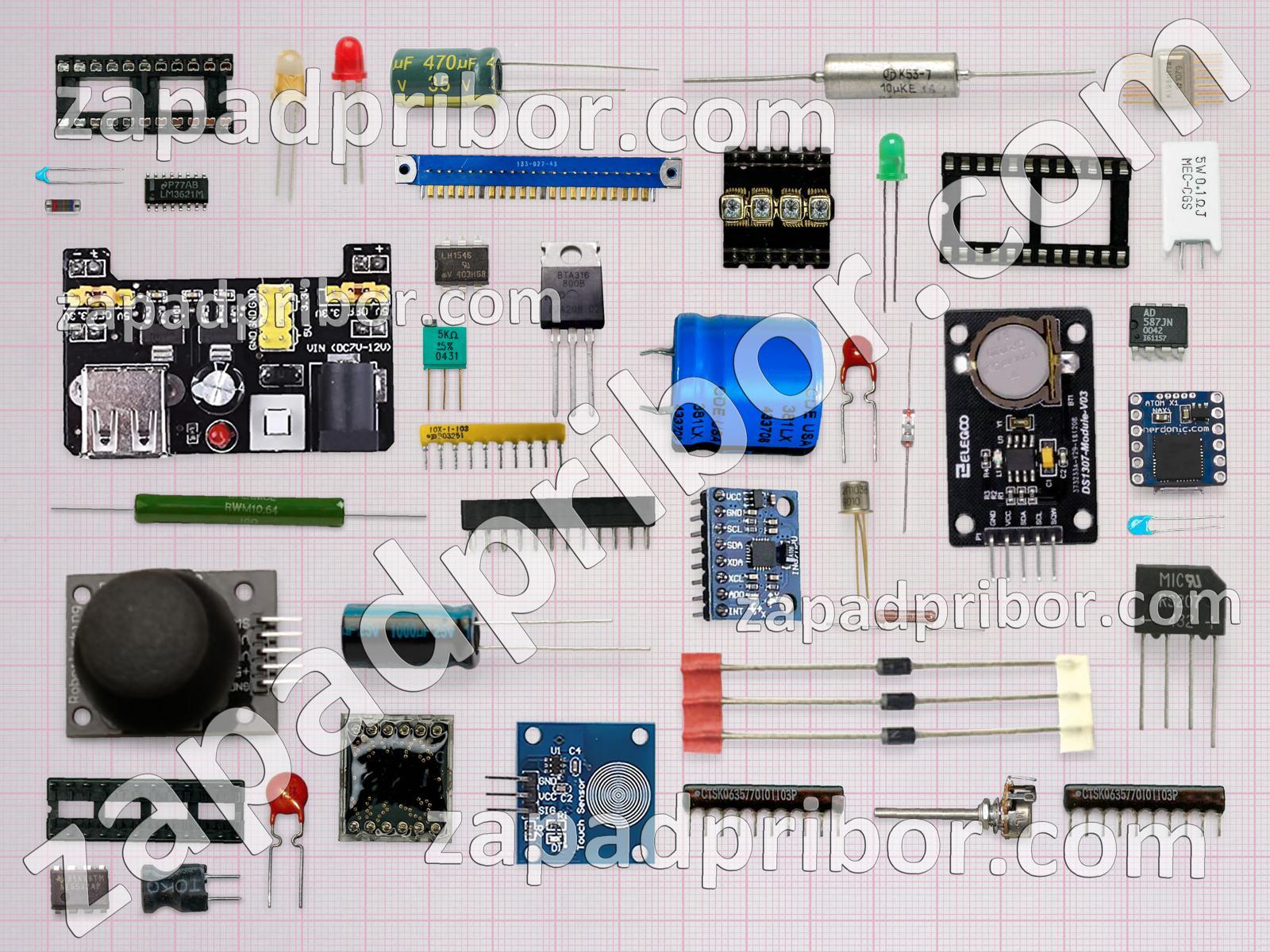 Кроме этих радиодеталей на нашем сайте вы сможете найти большой перечень компонентов. Осуществляйте поиск по основным типам радиодеталей таких как светодиод, переключатель, индикатор, датчик, дисплей, реле, резонатор, соединитель, транзистор, усилитель, разъем, кнопка, фотодиод, колодки, преобразователь, конденсатор, диод, индуктивность, резистор, диодный мост, контакты, адаптер, тумблер, трансформатор, дроссель, экран, тиристор, микросхема и другие.