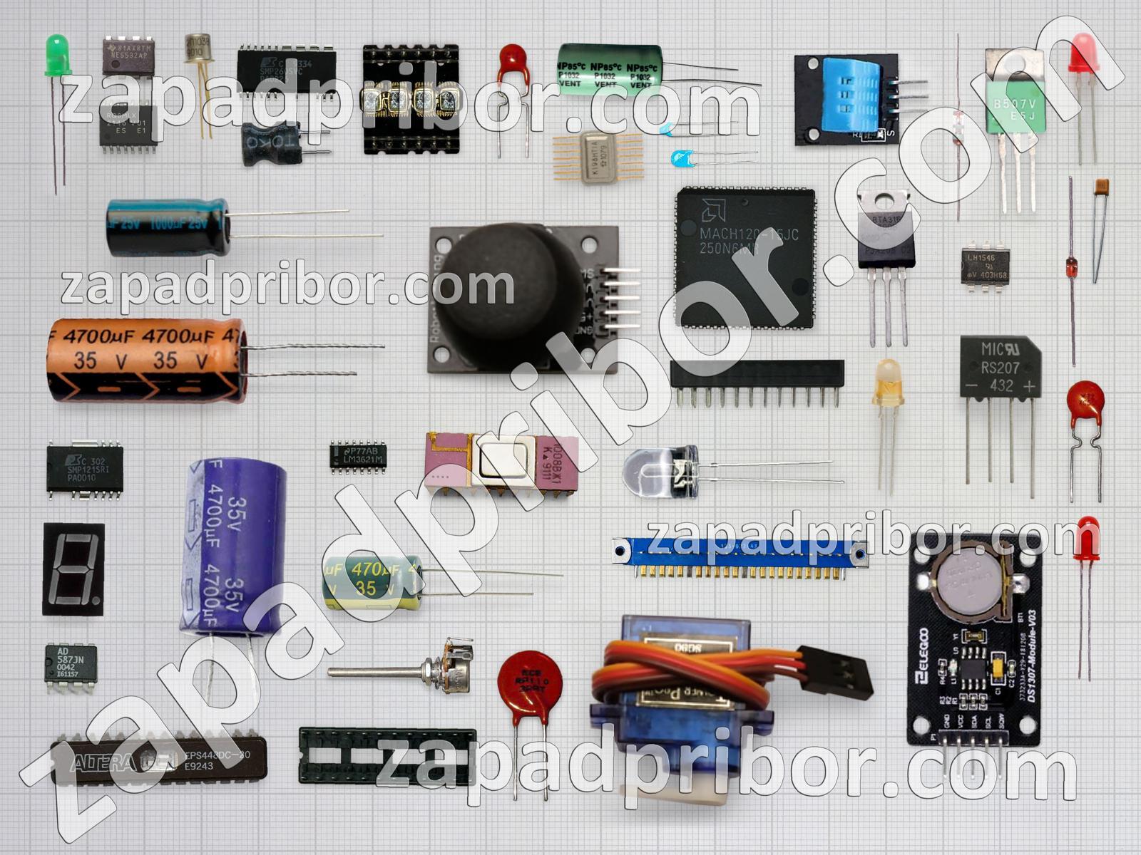 Кроме этих радиодеталей на нашем сайте вы сможете найти большой перечень компонентов. Осуществляйте поиск по основным типам радиодеталей таких как разъем, трансформатор, адаптер, реле, соединитель, микросхема, тиристор, контакты, резонатор, резистор, фотодиод, конденсатор, дисплей, переключатель, кнопка, экран, колодки, светодиод, дроссель, индуктивность, транзистор, датчик, тумблер, диодный мост, усилитель, индикатор, преобразователь, диод и другие.