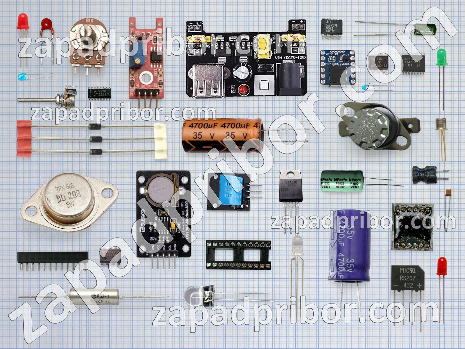 Кроме этих радиодеталей на нашем сайте вы сможете найти большой перечень компонентов. Осуществляйте поиск по основным типам радиодеталей таких как дроссель, резонатор, кнопка, датчик, контакты, соединитель, реле, разъем, индикатор, индуктивность, диод, экран, фотодиод, светодиод, резистор, транзистор, конденсатор, преобразователь, адаптер, колодки, диодный мост, тиристор, усилитель, тумблер, дисплей, микросхема, трансформатор, переключатель и другие.