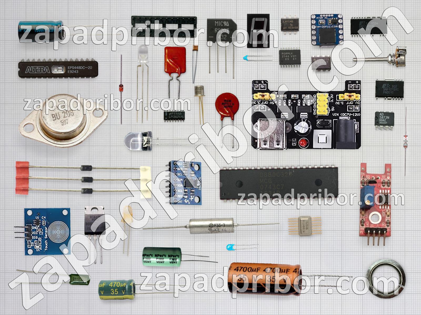 Кроме этих радиодеталей на нашем сайте вы сможете найти большой перечень компонентов. Осуществляйте поиск по основным типам радиодеталей таких как фотодиод, усилитель, переключатель, резистор, индикатор, резонатор, диодный мост, дисплей, транзистор, адаптер, трансформатор, светодиод, конденсатор, соединитель, датчик, колодки, дроссель, реле, преобразователь, экран, кнопка, тумблер, контакты, микросхема, разъем, диод, индуктивность, тиристор и другие.