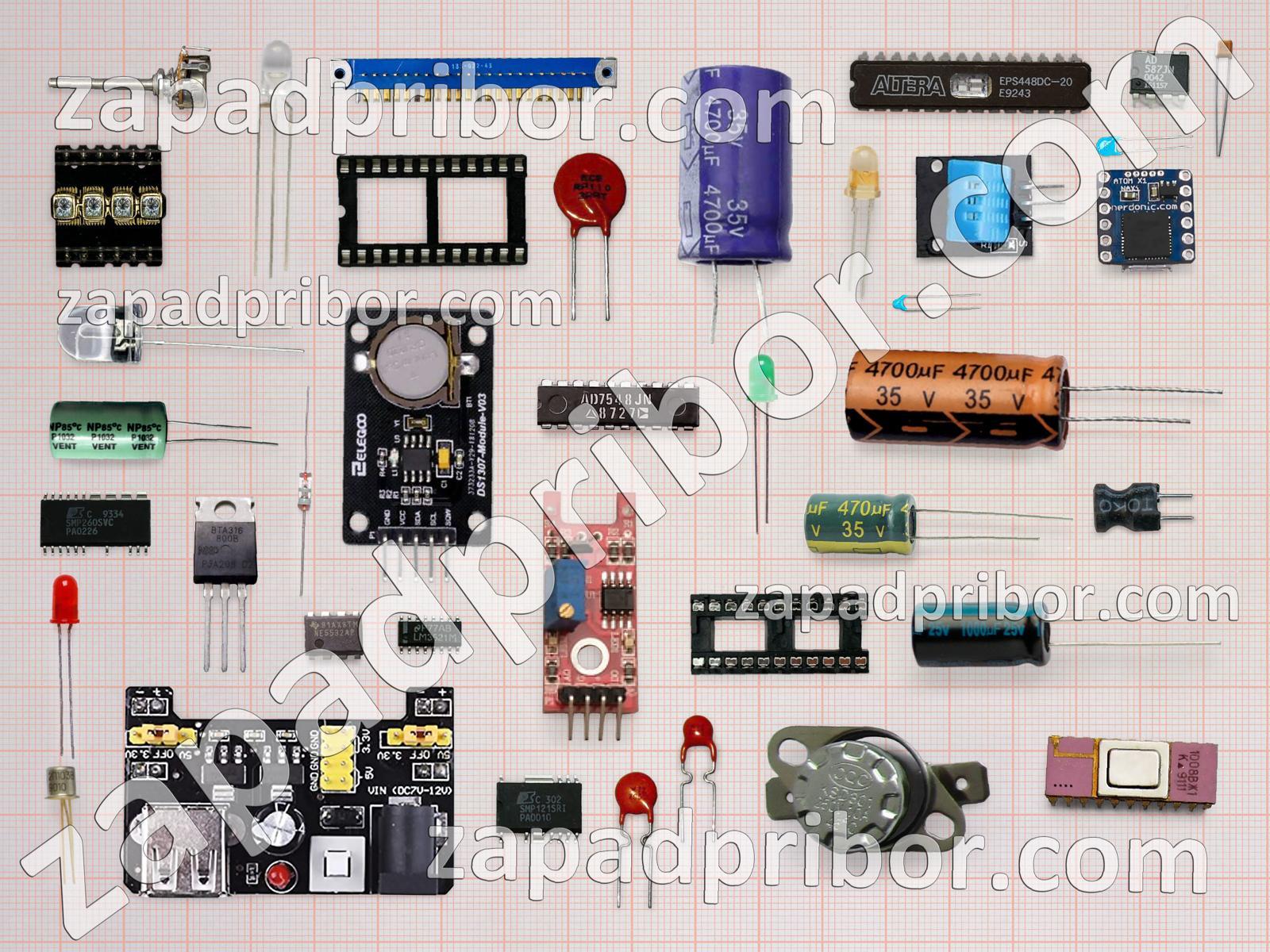 Кроме этих радиодеталей на нашем сайте вы сможете найти большой перечень компонентов. Осуществляйте поиск по основным типам радиодеталей таких как фотодиод, усилитель, дисплей, резонатор, кнопка, датчик, реле, дроссель, преобразователь, разъем, диодный мост, трансформатор, микросхема, экран, адаптер, колодки, тиристор, индикатор, конденсатор, индуктивность, переключатель, соединитель, тумблер, диод, транзистор, резистор, светодиод, контакты и другие.