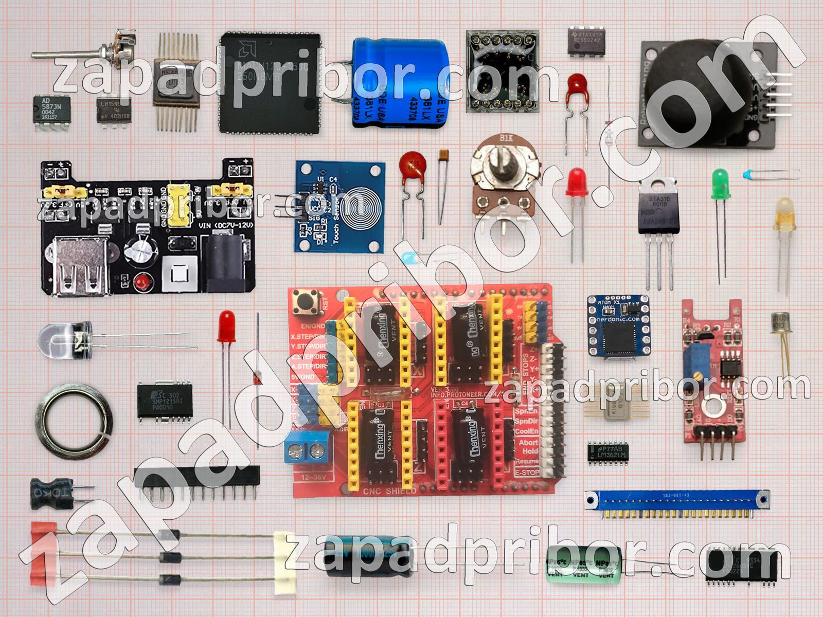 Кроме этих радиодеталей на нашем сайте вы сможете найти большой перечень компонентов. Осуществляйте поиск по основным типам радиодеталей таких как микросхема, колодки, индуктивность, светодиод, транзистор, реле, кнопка, резонатор, датчик, тиристор, переключатель, преобразователь, контакты, дроссель, соединитель, усилитель, дисплей, трансформатор, фотодиод, тумблер, диод, резистор, диодный мост, разъем, индикатор, адаптер, экран, конденсатор и другие.