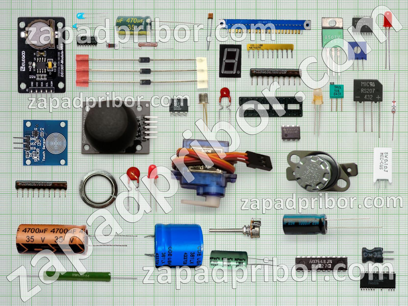 Кроме этих радиодеталей на нашем сайте вы сможете найти большой перечень компонентов. Осуществляйте поиск по основным типам радиодеталей таких как соединитель, индикатор, адаптер, тиристор, светодиод, индуктивность, дисплей, диодный мост, разъем, датчик, дроссель, экран, диод, переключатель, резонатор, трансформатор, колодки, микросхема, реле, преобразователь, кнопка, контакты, резистор, транзистор, усилитель, фотодиод, конденсатор, тумблер и другие.