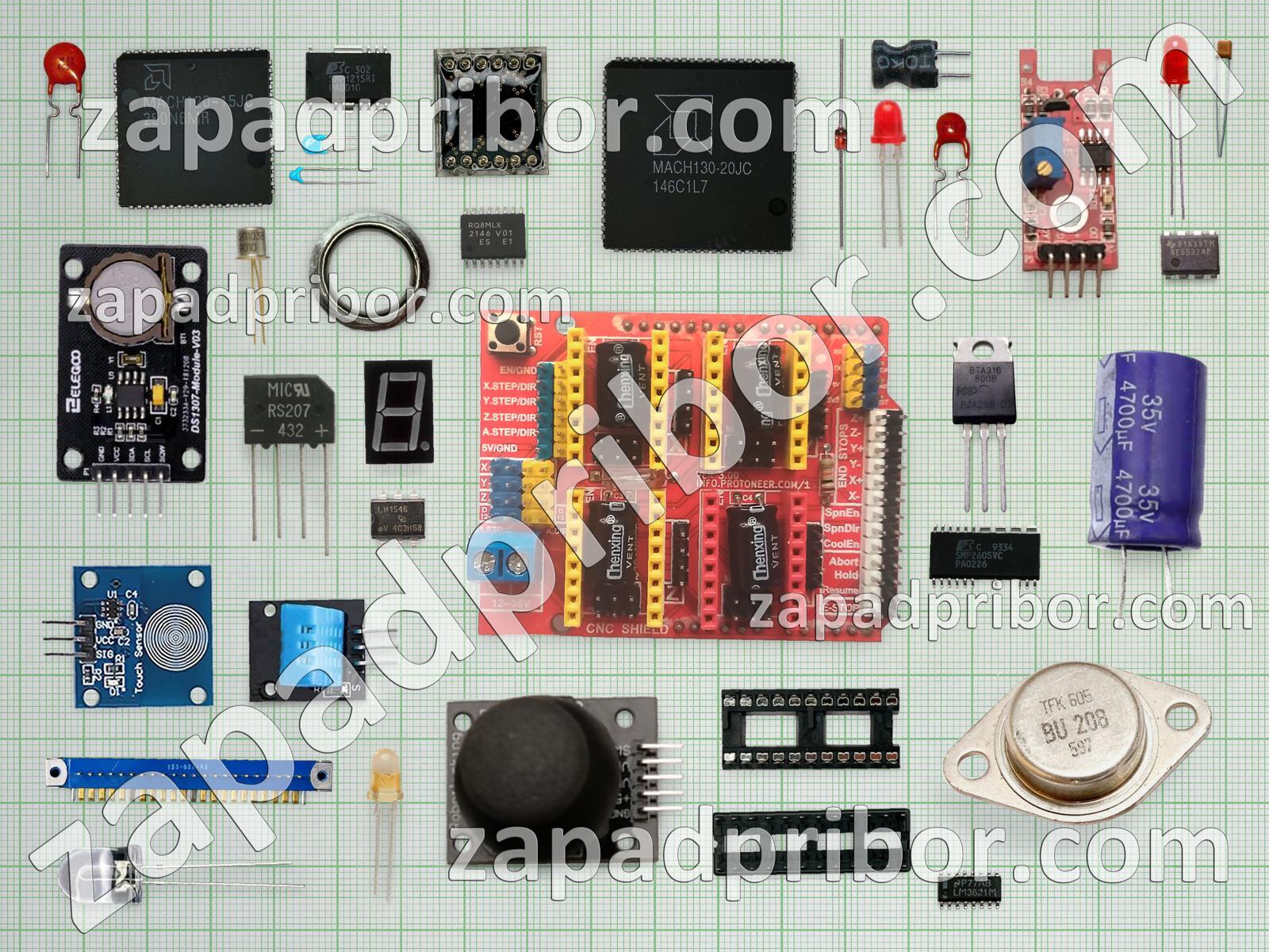 Кроме этих радиодеталей на нашем сайте вы сможете найти большой перечень компонентов. Осуществляйте поиск по основным типам радиодеталей таких как переключатель, индуктивность, преобразователь, датчик, дисплей, резистор, разъем, экран, диодный мост, адаптер, микросхема, контакты, конденсатор, транзистор, кнопка, реле, соединитель, трансформатор, резонатор, усилитель, светодиод, тиристор, колодки, тумблер, дроссель, индикатор, фотодиод, диод и другие.
