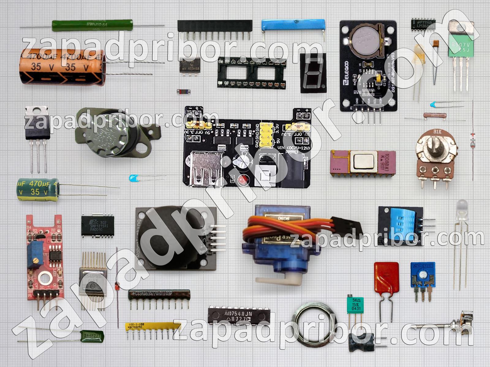 Кроме этих радиодеталей на нашем сайте вы сможете найти большой перечень компонентов. Осуществляйте поиск по основным типам радиодеталей таких как индуктивность, конденсатор, датчик, контакты, транзистор, светодиод, дисплей, реле, диод, тумблер, соединитель, индикатор, переключатель, разъем, тиристор, резистор, преобразователь, фотодиод, кнопка, резонатор, адаптер, экран, дроссель, усилитель, диодный мост, трансформатор, колодки, микросхема и другие.